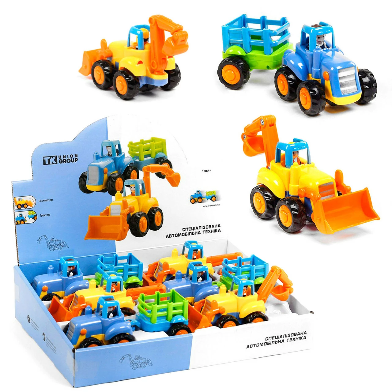 Набор тракторов выполнен из первичного пластика и окрашен в яркое