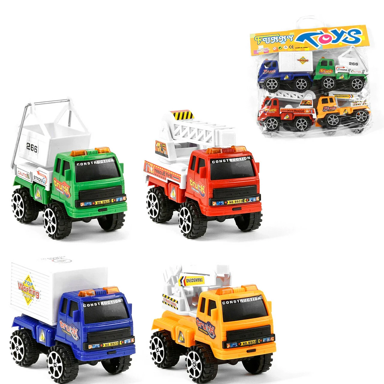в наборе 4 машинки: два подъемных крана и два грузовика. Набор спецтехники из четырех машинок станет отличным дополнением вашему юному автолюбителю. Машинки достаточно небольшие, поэтому с легкостью поместятся в прогулочный рюкзак. Машинки инерционные, поэтому с одного взмаха руки машинка полетит навстречу приключениям.