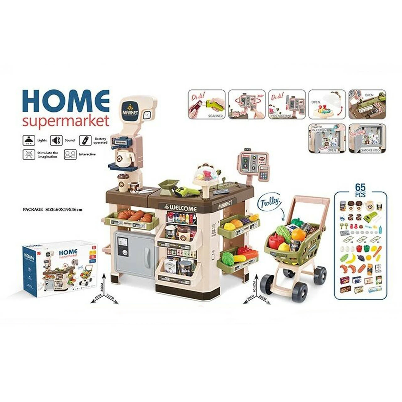 Набор Супермаркет 65 предметов Kimi со звуковым и световым эффектом Бежево-коричневый 6990891400772