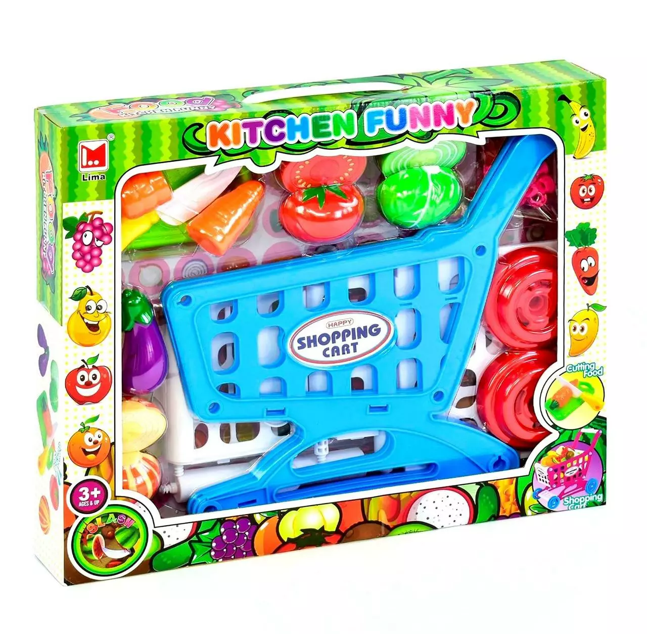 вращающимися колесиками. Также в набор входят: - пластиковые овощи,