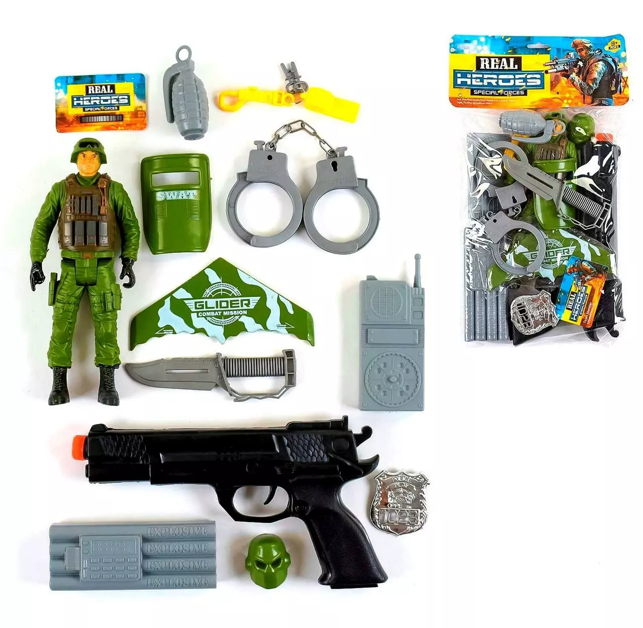 Граната; - Свисток; - Игровая фигурка солдата с военными