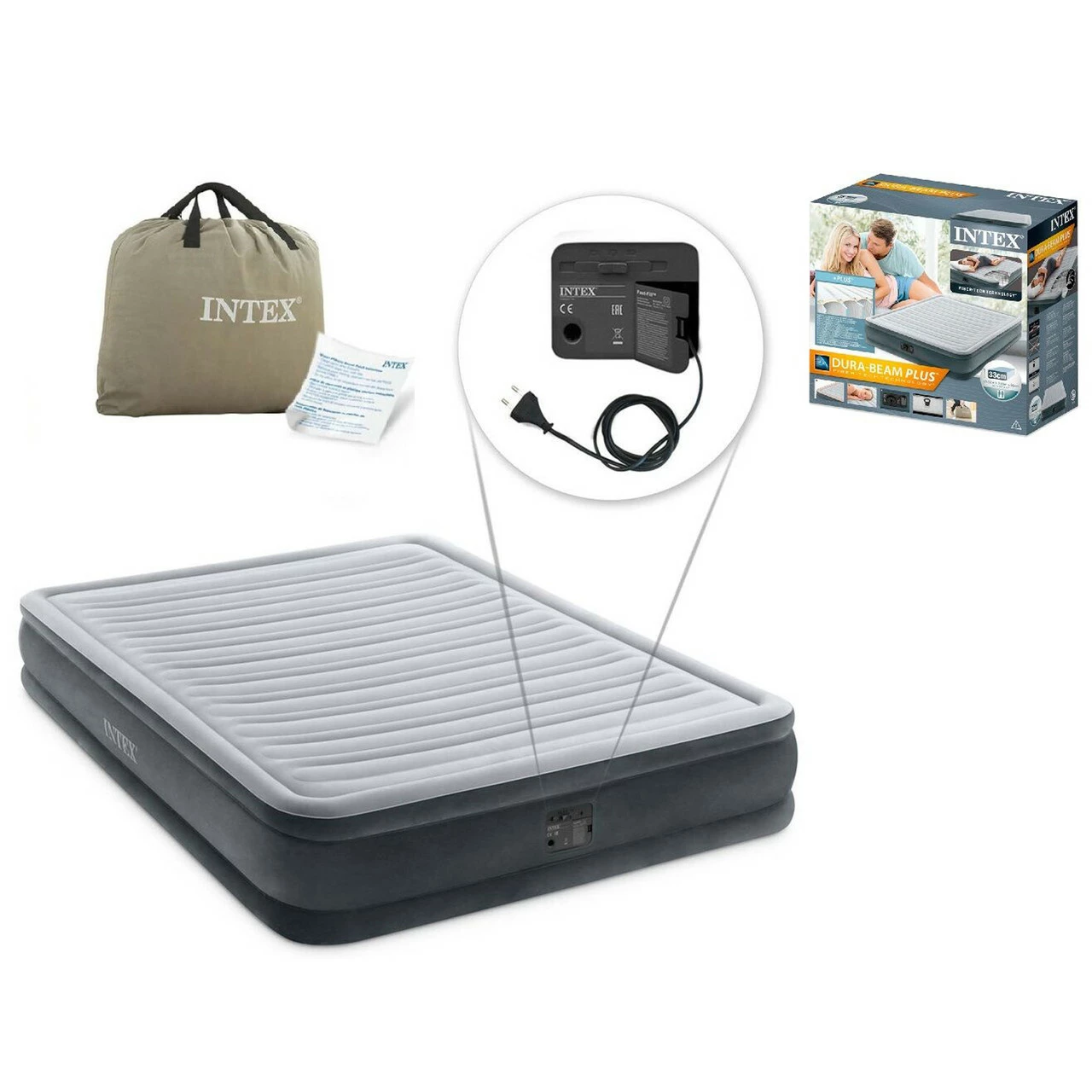 Надувной кровать-матрас Intex со встроенным электрическим насосом Серый 6941057417707