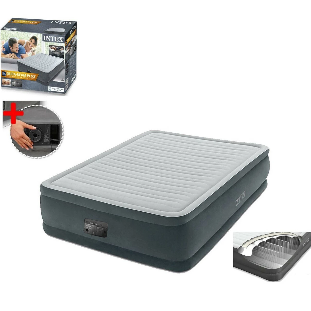 Надувной кровать-матрас Intex со встроенным электрическим насосом Серый 6941057417721