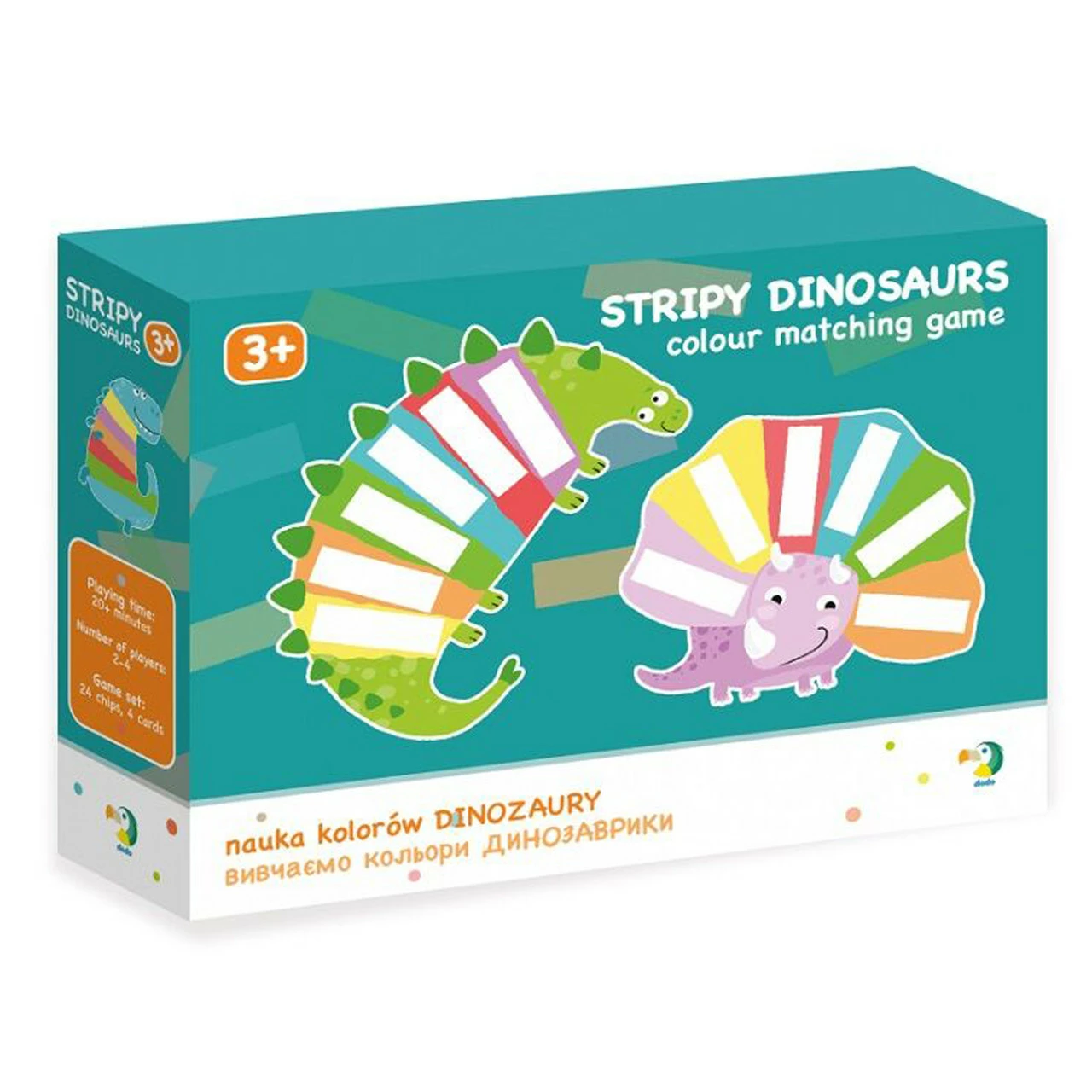 Цель игры: Первым заполнить своего динозаврика полосами разных