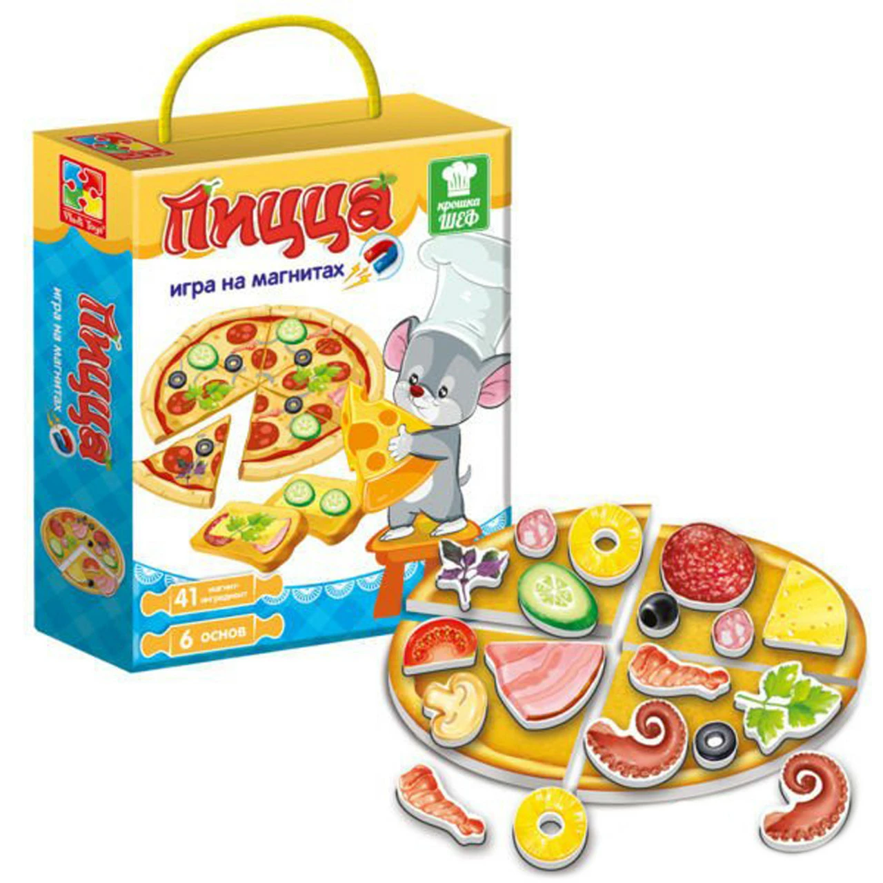 кусочка пиццы, 2 тоста, 41 магнитный ингредиент. Игра на украинском