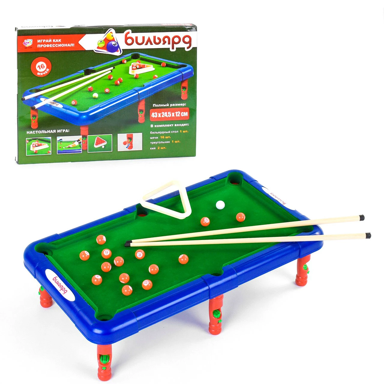 • 2 кия Размер стола: 43 см х 25 см х 12 см.