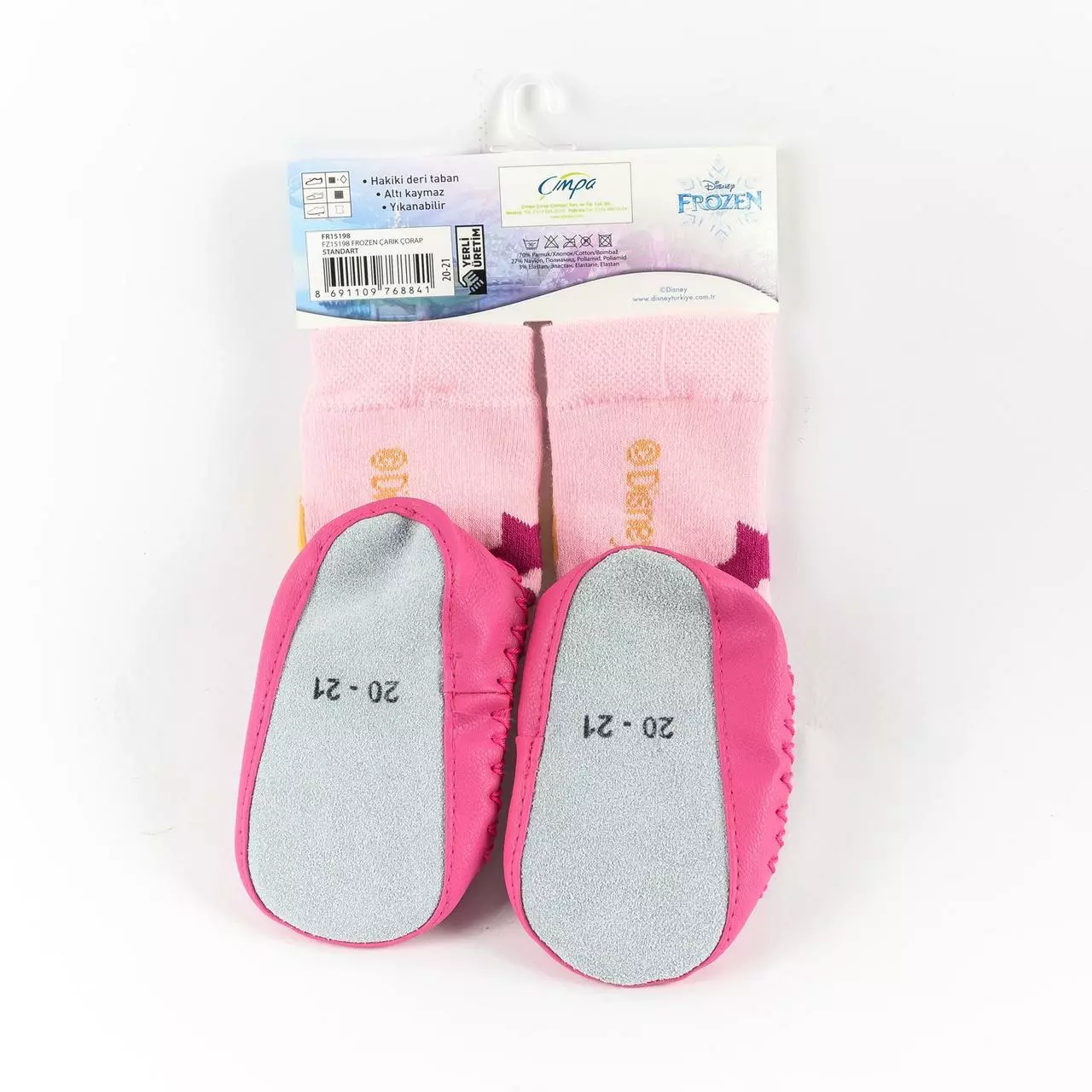 порадуют маленькую любительницу легендарного мультика. Носки-тапочки очень практичны для дома или прогулок на улице, так как они плотно прилегают к ноге, при этом остаются комфортными для детей как носки , не дадут замерзнуть маленьким ножкам и сохранят спокойствие родителей о том что ребёнок может простудиться от переохлаждения, постоянно снимая обычные домашние тапочки. Носки-тапочки обладают гибкостью чешек, что в свою очередь не стесняет движение ноги и оставляет возможность выгибаться ступне естественным образом. Турецкий производитель лицензированных (компанией Disney) носков-тапочек Cimpa использует прочные и приятные на ощупь материалы для повседневной но ски.