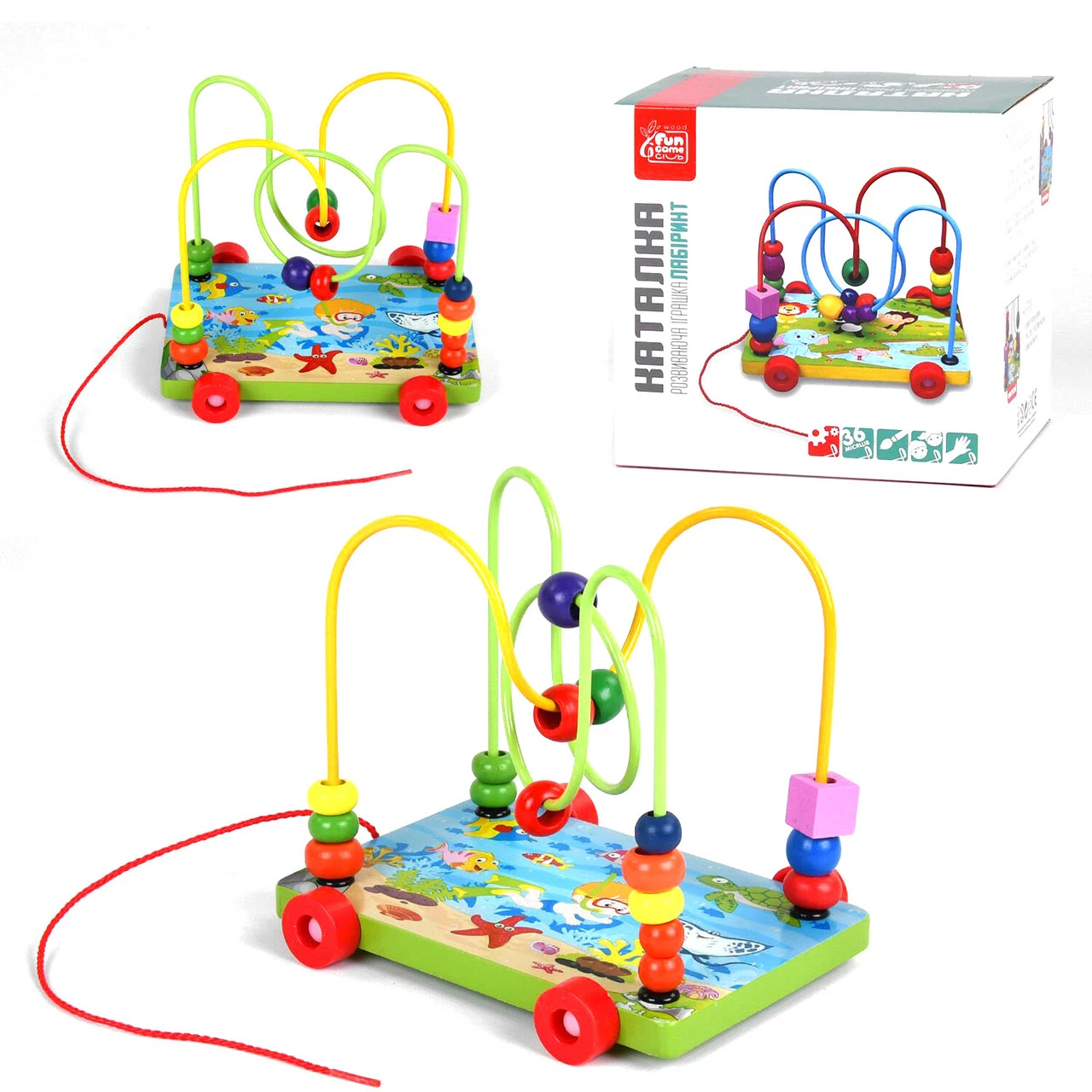 Деревянная каталка с пальчиковым лабиринтом развивающая игрушка для