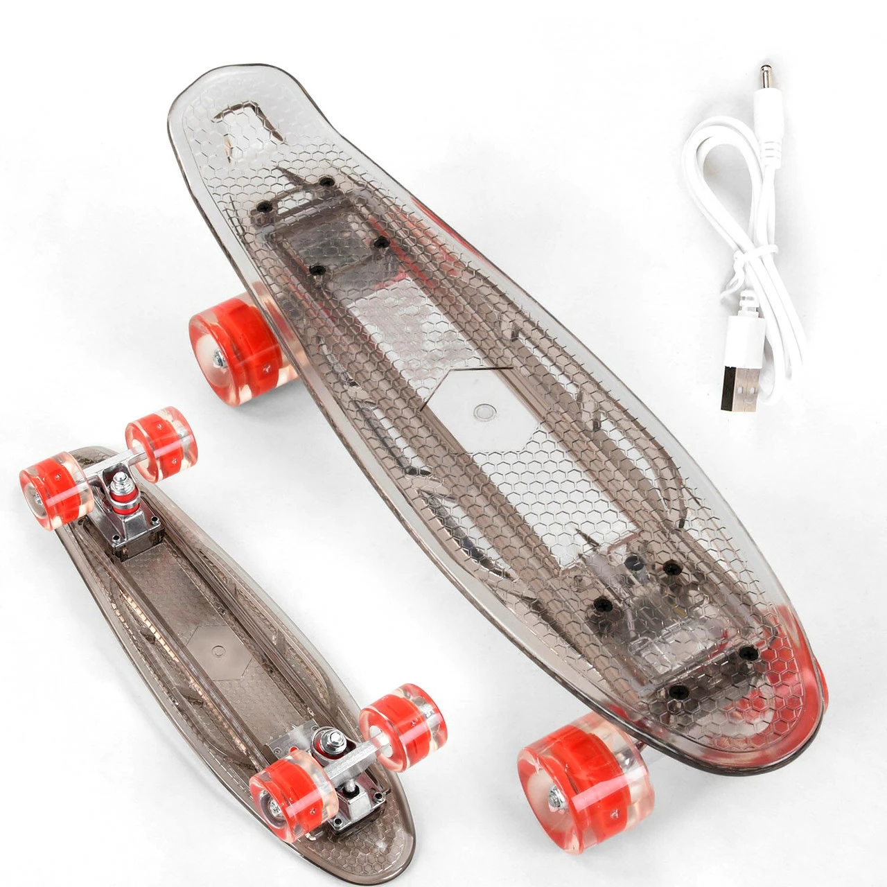 - Особенности: Колеса светятся при езде|Прозрачная светящаяся дека