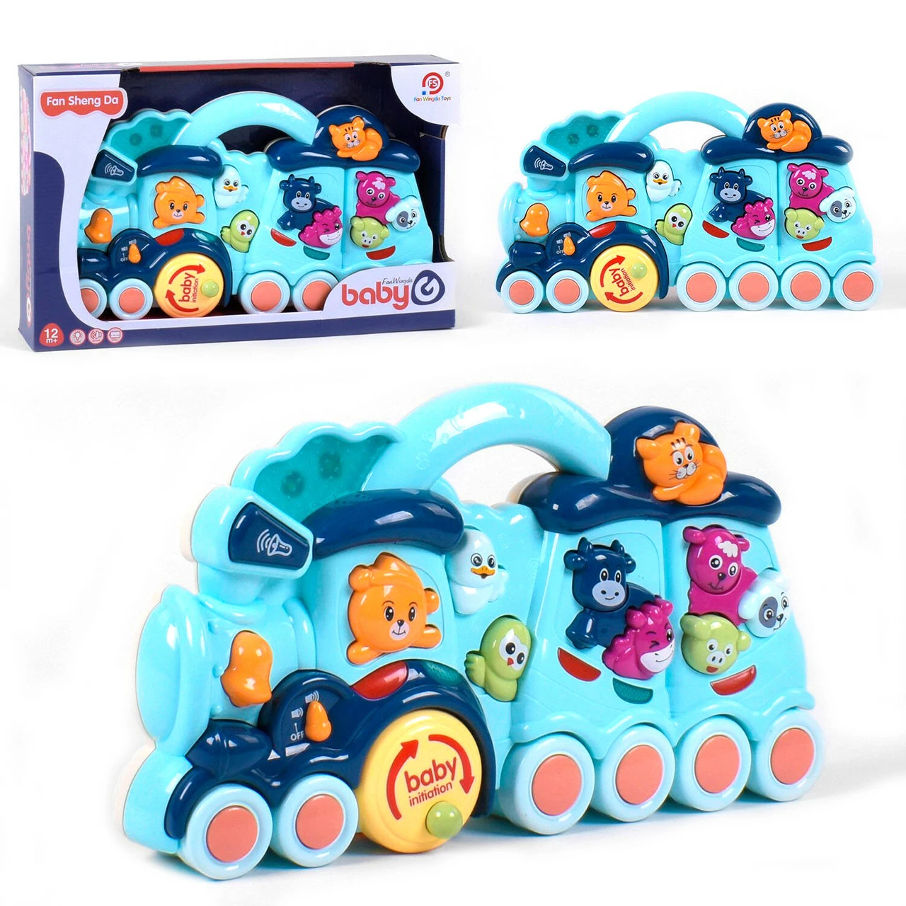 если активировать мелодию и нажать любое животное, то Вы услышите туже мелодию в исполнении выбранного животного. Поезд работает от 2х батареек типа АА - не входят в комплект.