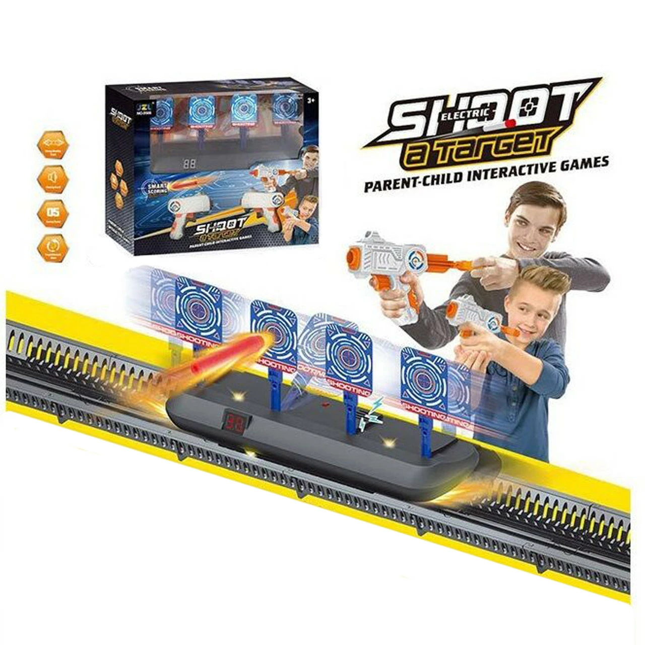 игра позволяет развивать меткость и терпение ребенку. Веселая игра, которая позволяет детям концентрировать свое внимание на мишени, за счет движения, ребенок сможет воспитать в себе выдержку и силу воли. Два пистолета позволят играть в игру в компании и набирать баллы за попадание в мишень. Комплектация:
