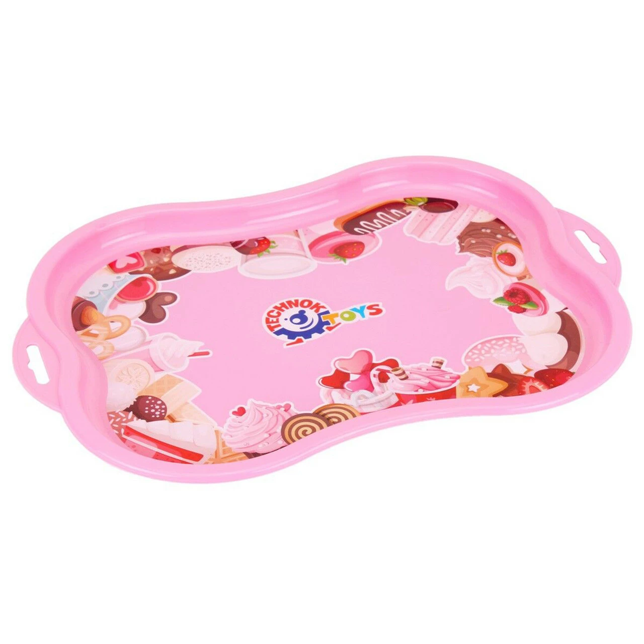 друзей. Поднос окрашен в очень нежный розовый цвет и украшен яркими