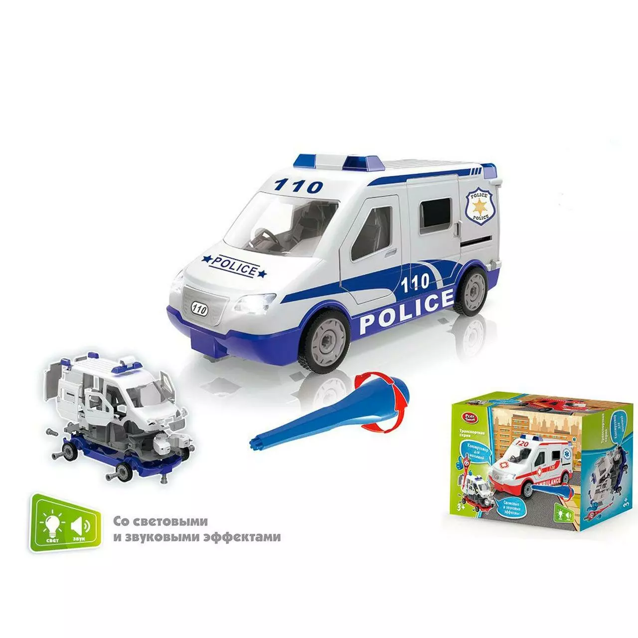 звуковые и световые эффекты; Модель обладает звуковыми и световыми эффектами, поэтому играть с ней будет еще интереснее. Дети с удовольствием будут раскручивать и закручивать гайки, представляя себя настоящими мастерами машинного дела. В комплекте: