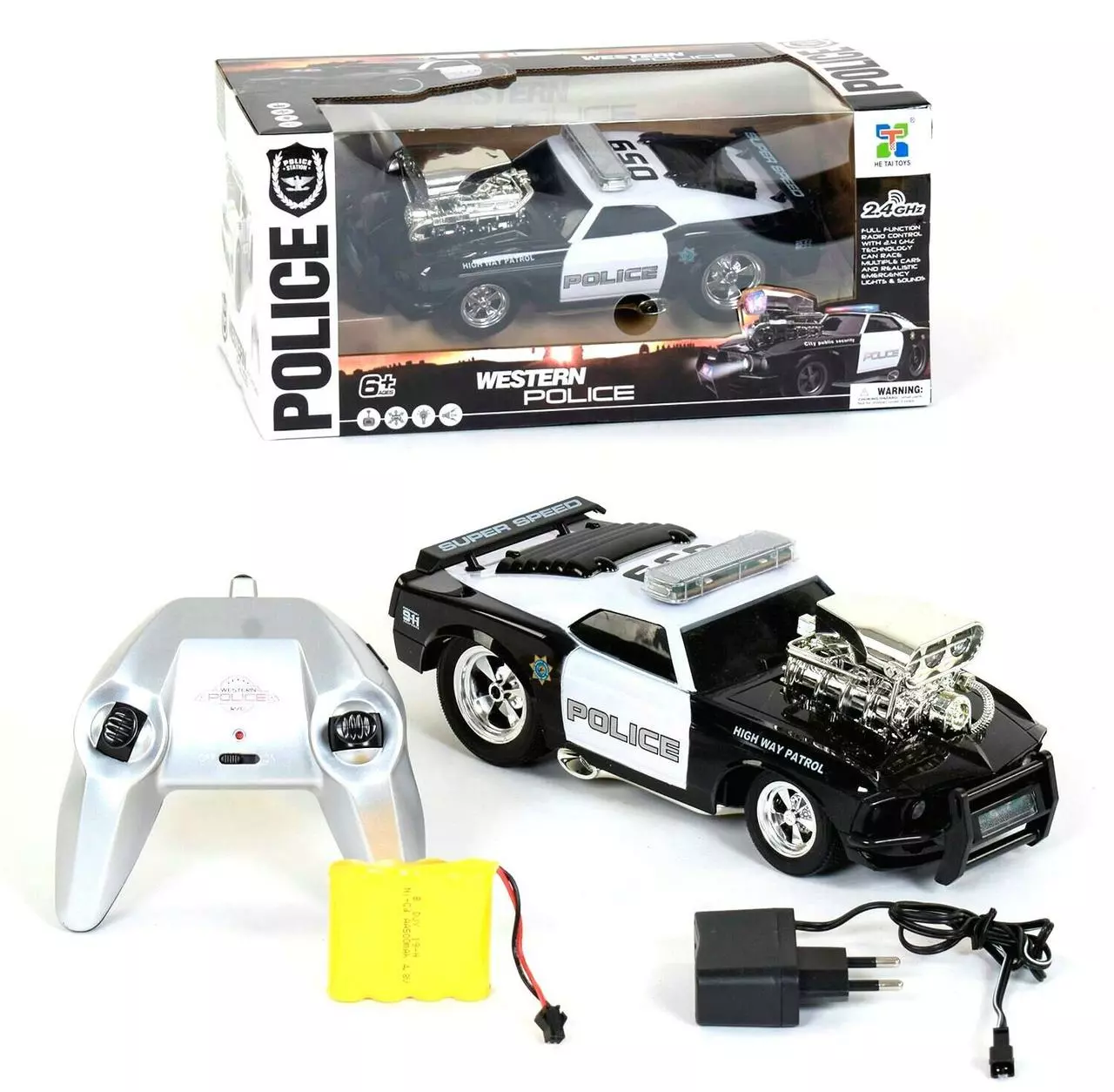 Полицейская машина на радиоуправлении со светом и звуком Kimi черно-белая 82247048