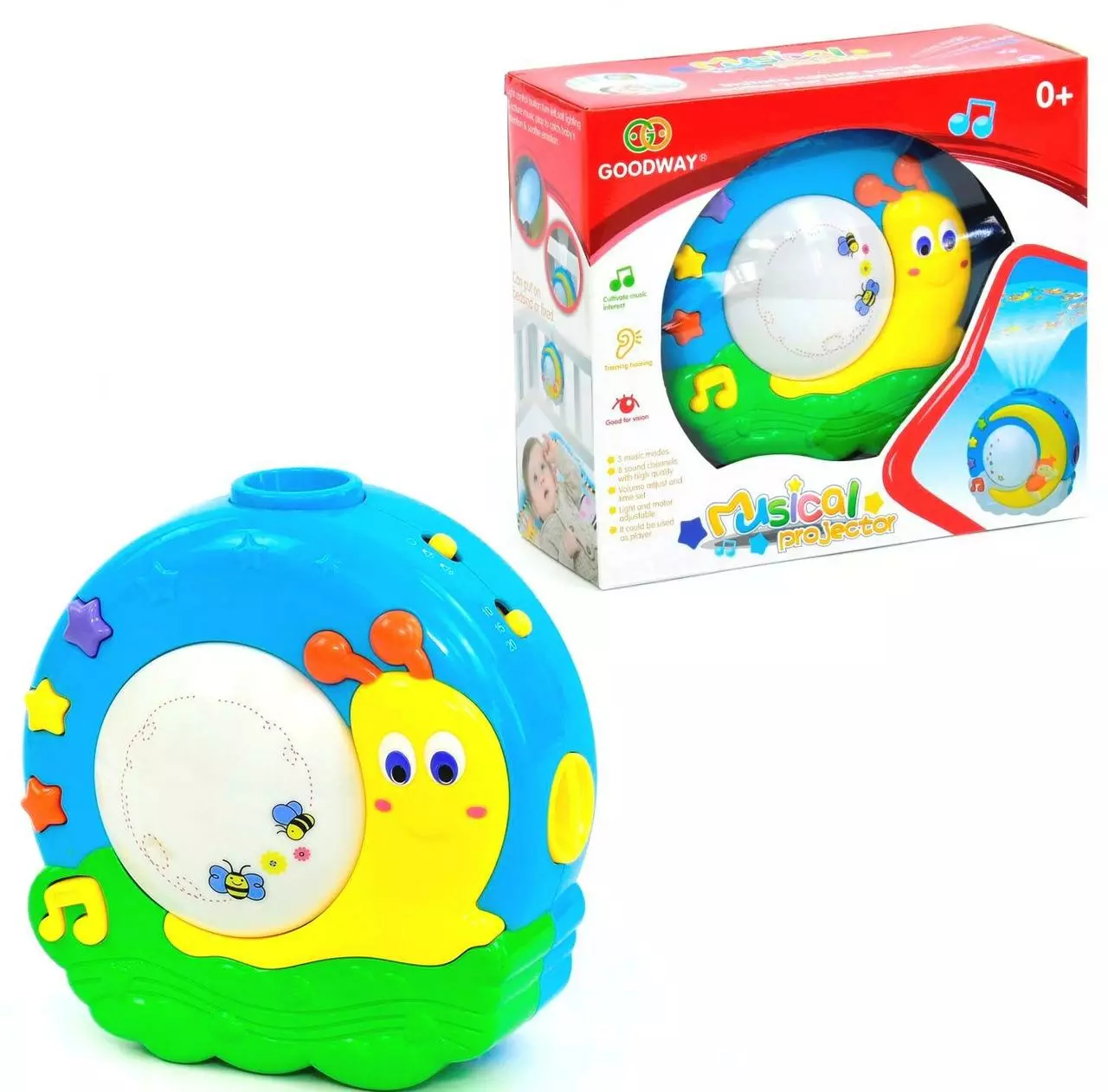 колыбельные и проецирует приятные изображения мультяшных насекомых