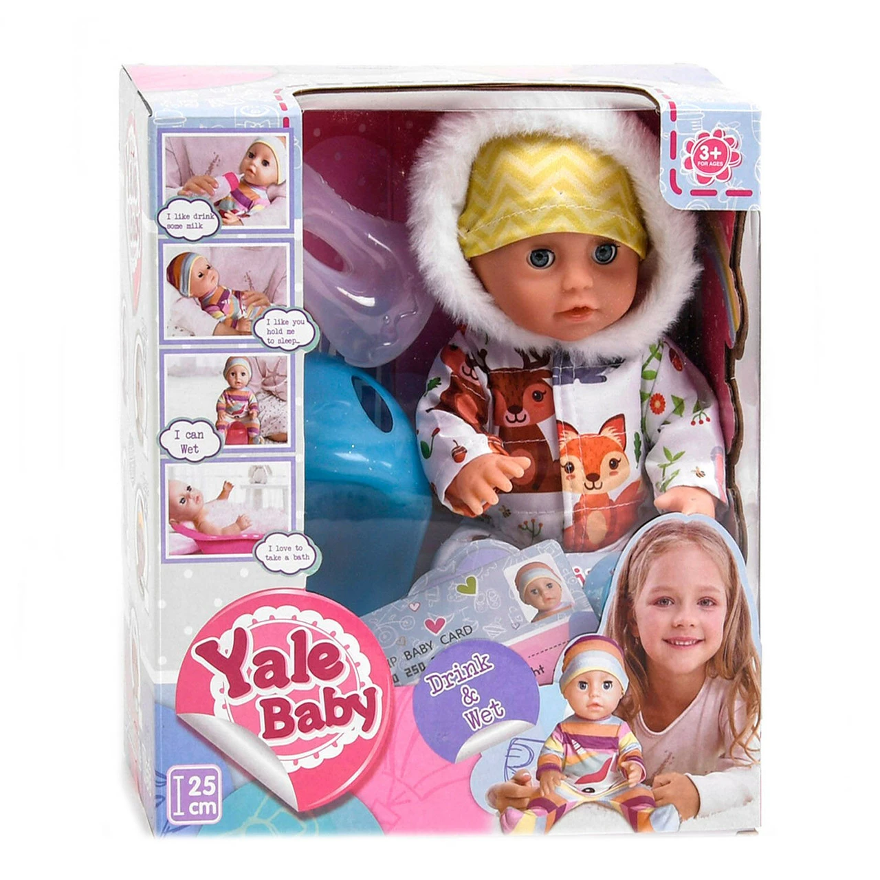 аксессуары. Для первичного ухода за младенцем набор комплектуется: бутылочкой, горшком, соской и ID-картой. Рост пупса - 25 см.