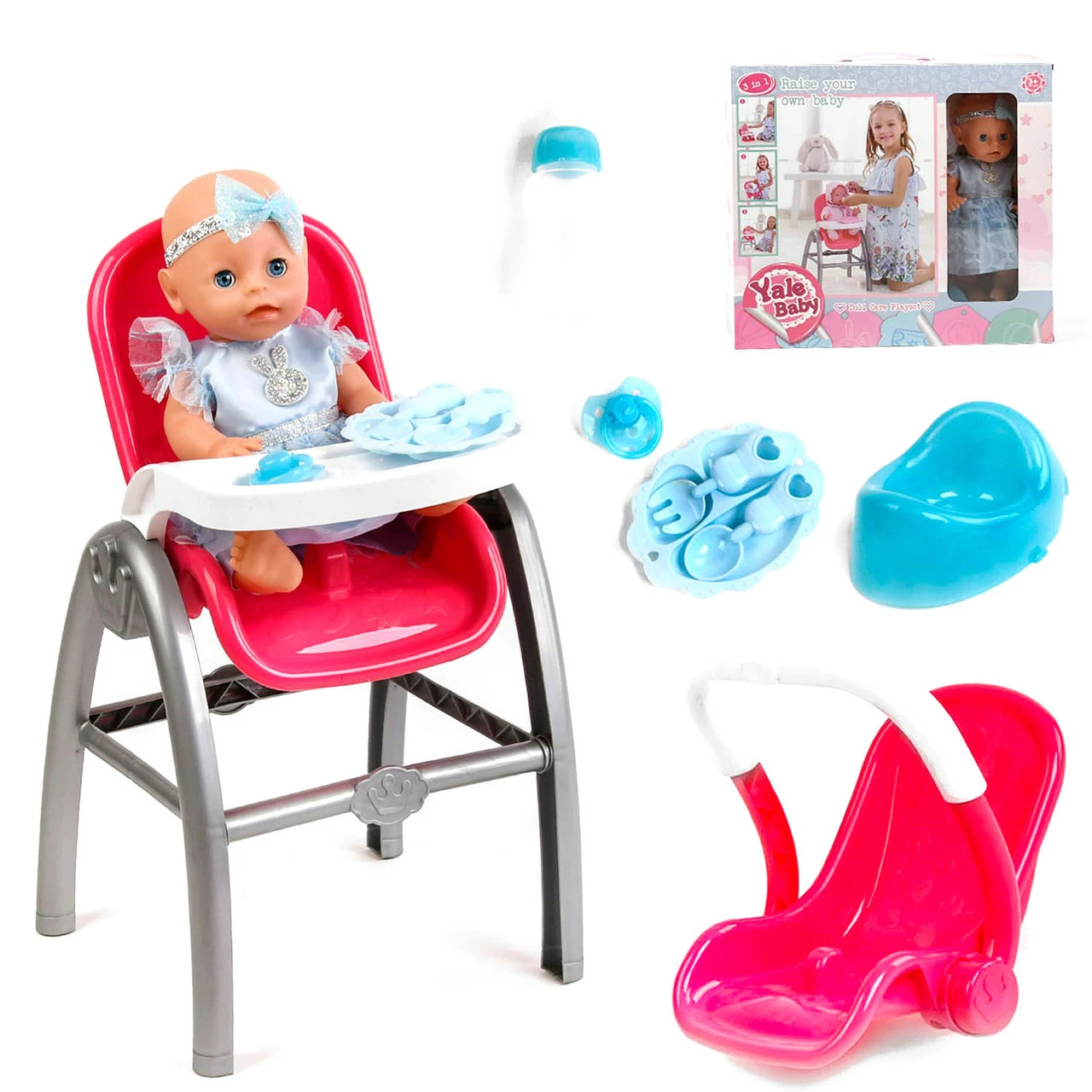 Очаровательный пупсик с детским стульчик-трансформером и