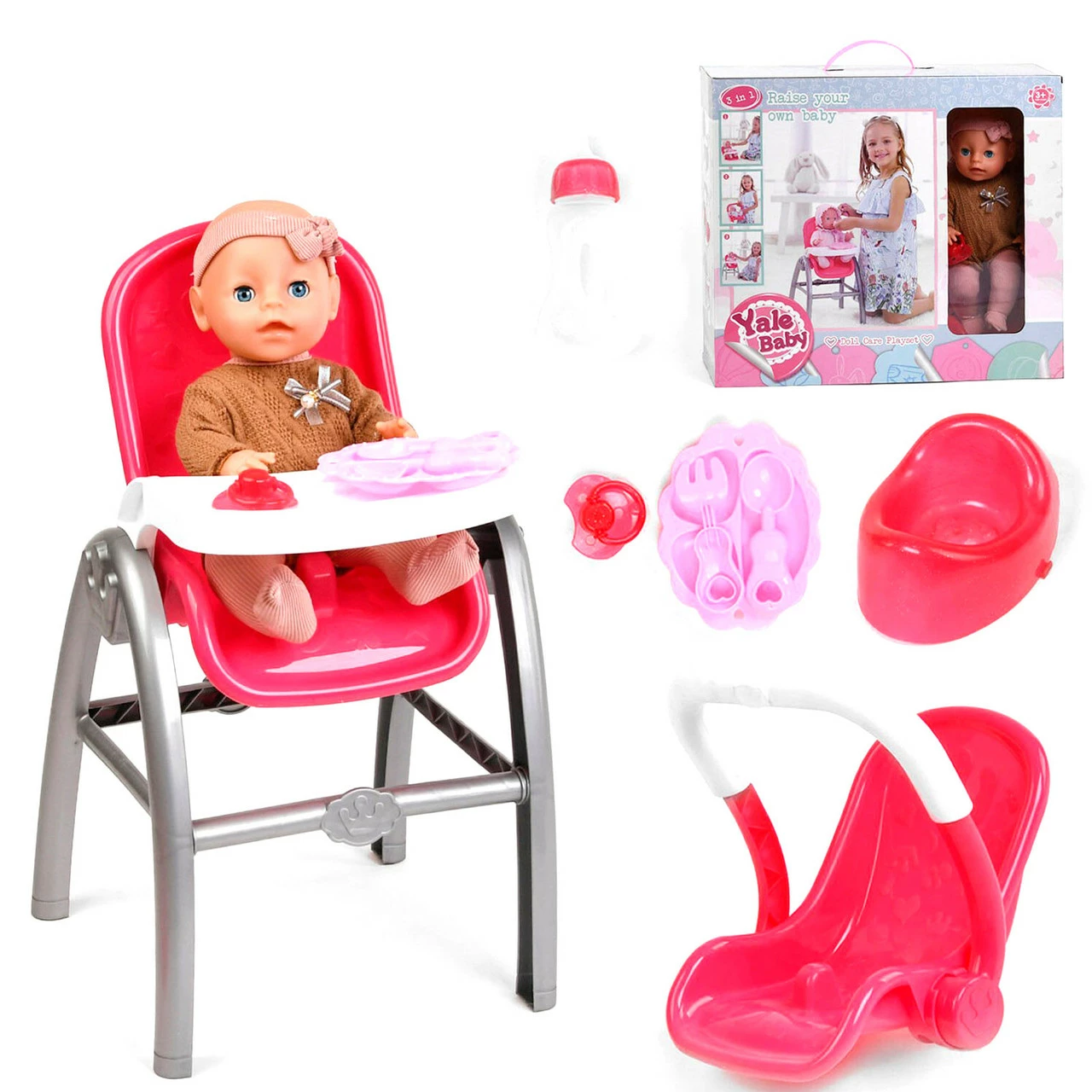 Очаровательный пупсик с детским стульчик-трансформером и