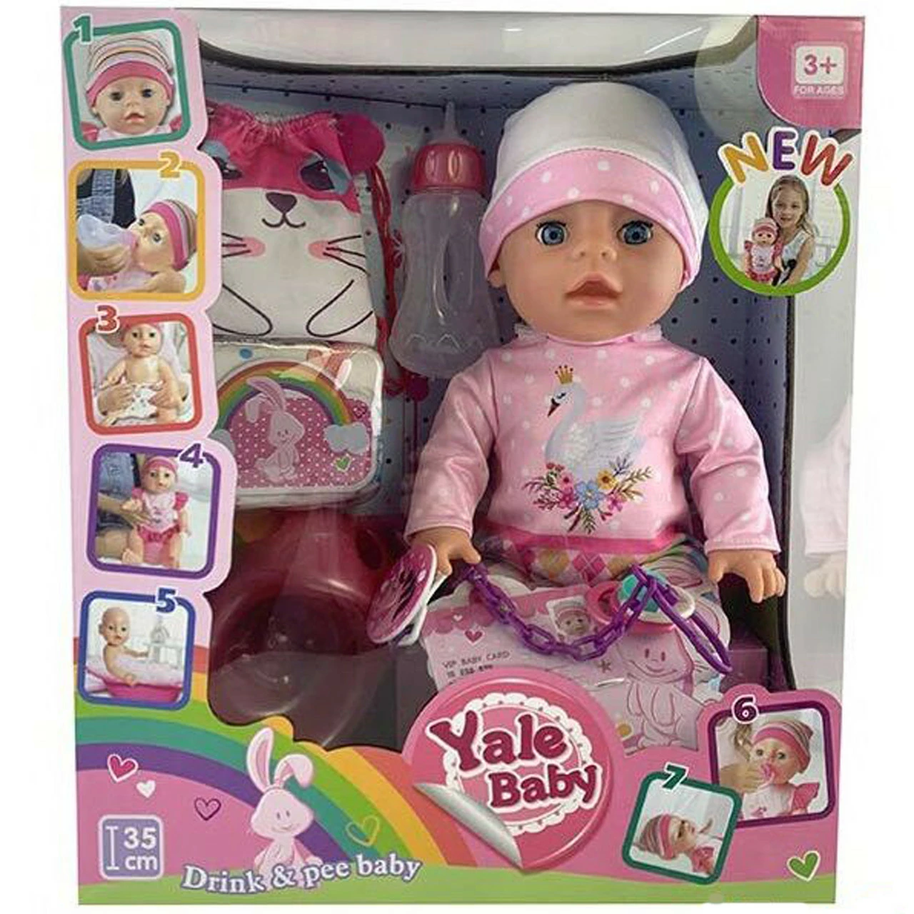 функциональные особенности игровой модели: пьет из бутылочки, писает, закрывает глазки;