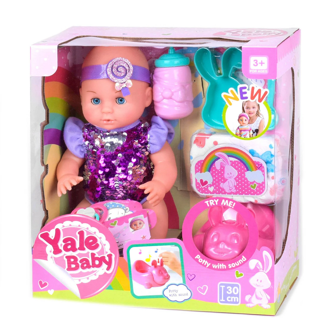 Пупс функциональный с аксессуарами Kimi со звуковым эффектом 30 см Фиолетовый 6982662586433