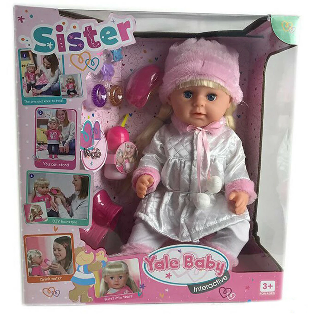 пупс запищит. В наборе с пупсом: бутылочка, щетка для расчесывания