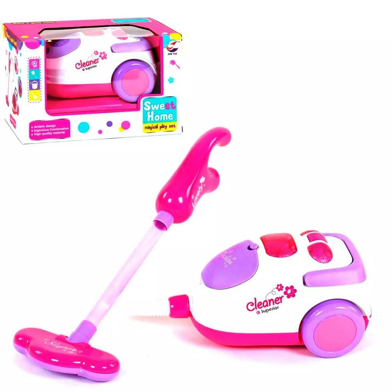 Пылесос Kimi со световым и звуковым эффектом Бело-розовый 6967485050316