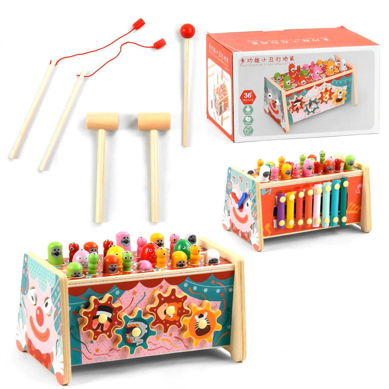 вращающиеся глазки - бусинки. Стучалка выполнена из экологически чистых материалов, а все игровые элементы тщательно отполированы и покрыты высококачественными красками, которые абсолютно безопасны для детского здоровья. Особенности модели: