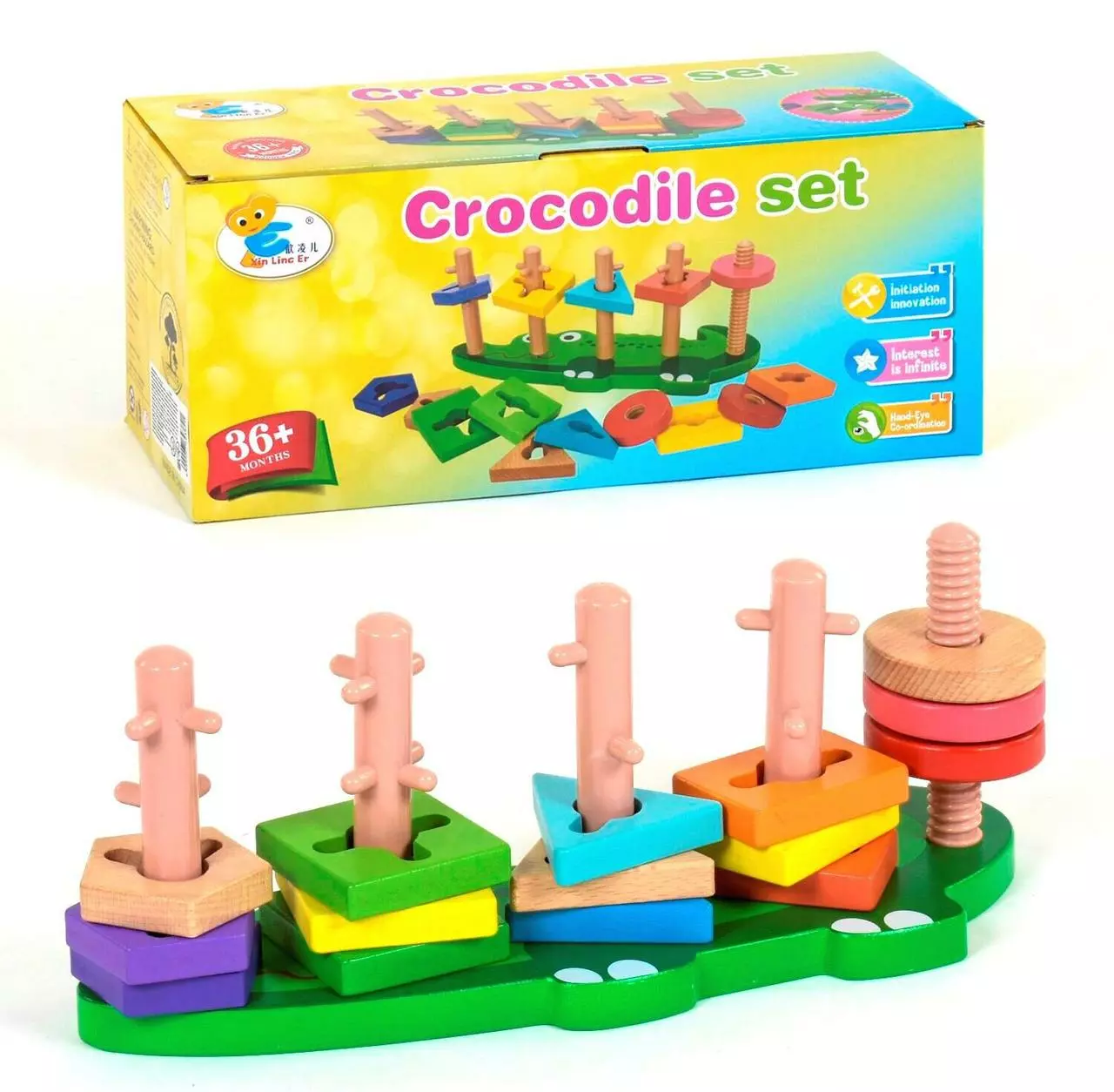 Логическая пирамидка Крокодил это деревянное основание с 5-ю