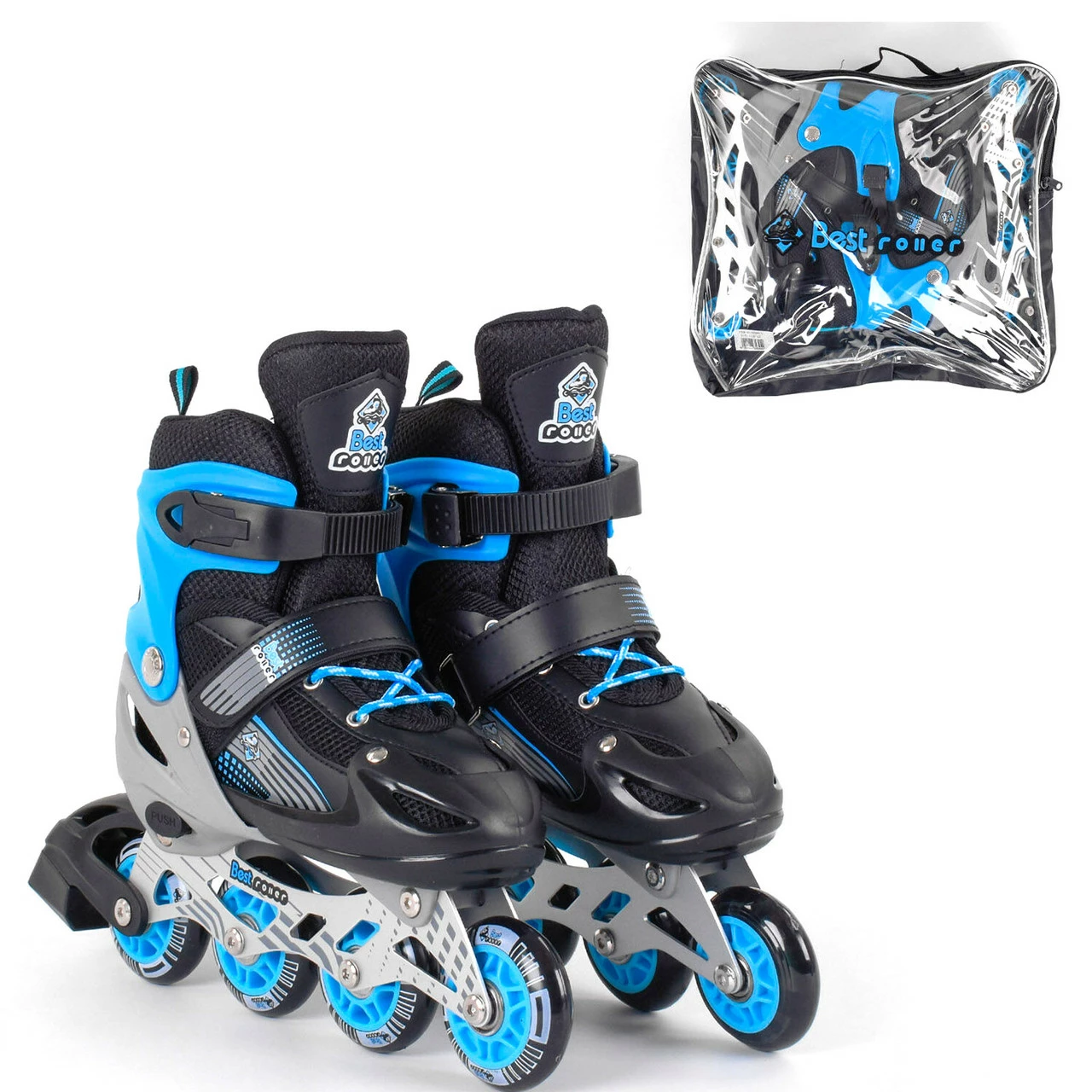 Роликовые коньки Roller 30-33 р со световым эффектом Черно-голубой 6900066343339