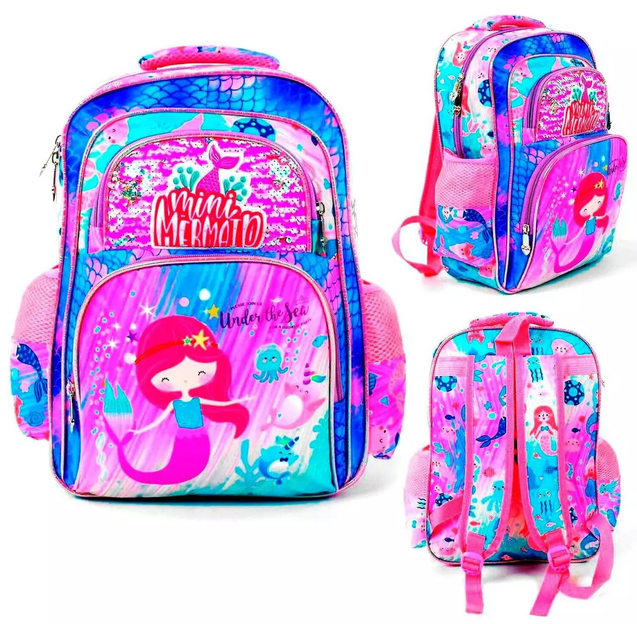 Рюкзак Русалка школьный Kimi пайетки 1 отделение 2 кармана мягкая спинка Розовый с голубым 6900067436306