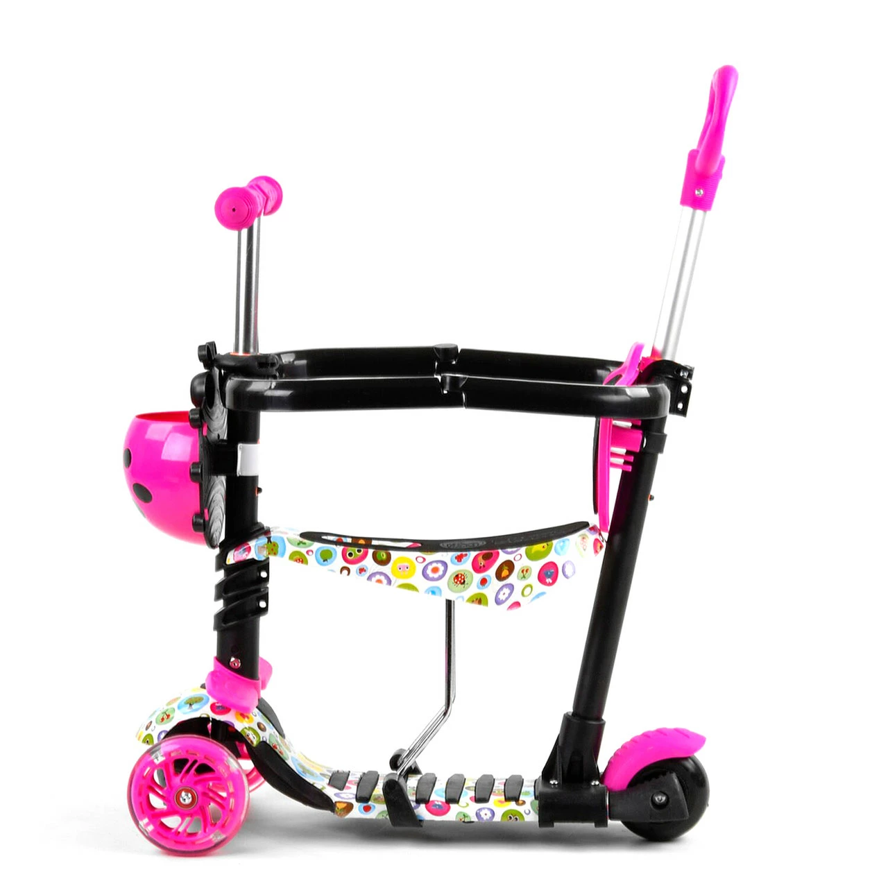 Самокат 5 в 1 с защитным бампером Scooter со световым эффектом Бело-розовый 6900066350672
