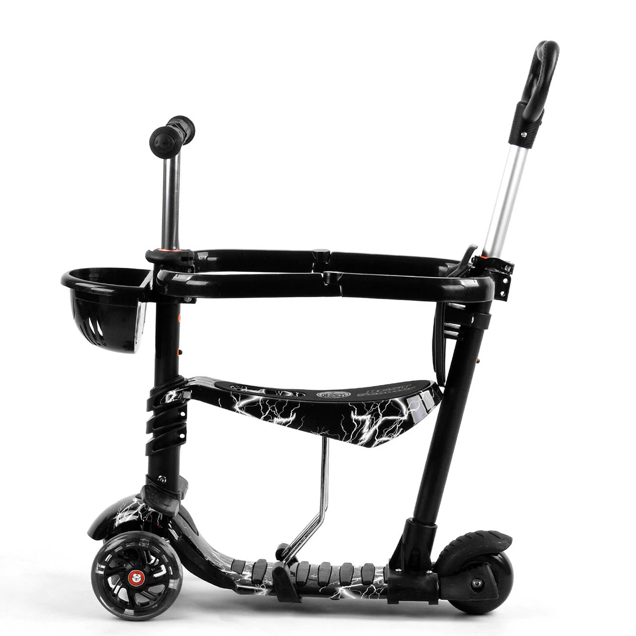 Самокат 5 в 1 с защитным бампером Scooter со световым эффектом Черно-белый 6900066350658