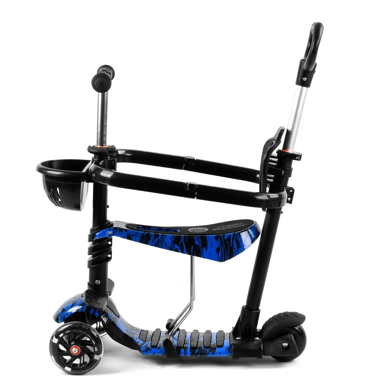 Самокат 5 в 1 с защитным бампером Scooter со световым эффектом Черно-синий 6900066350702