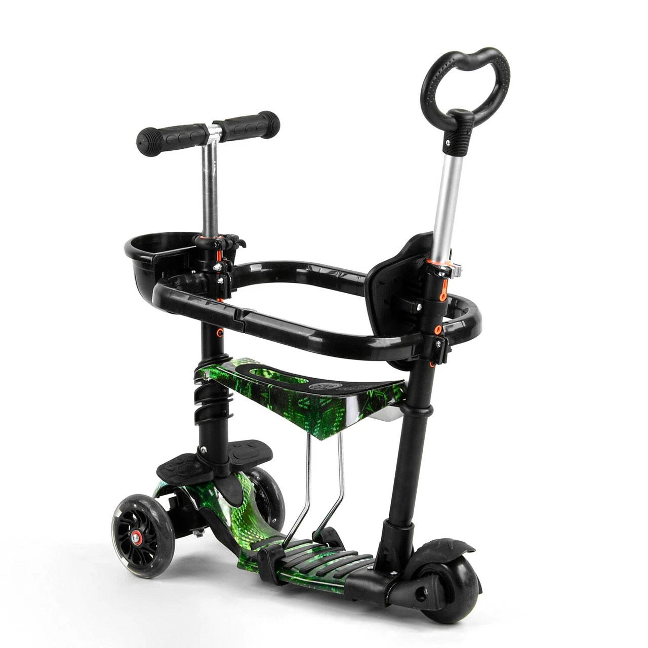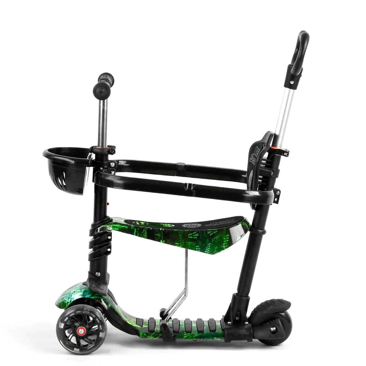 Самокат 5 в 1 с защитным бампером Scooter со световым эффектом Черно-зеленый 6900066350610