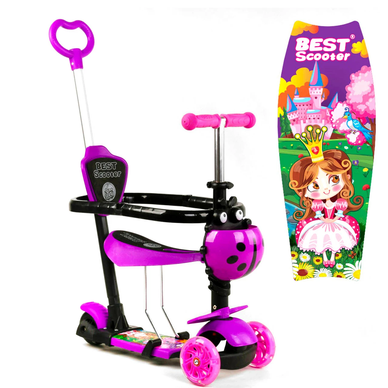 Самокат 5 в 1 с защитным бампером Scooter со световым эффектом Фиолетовый 6900066351150