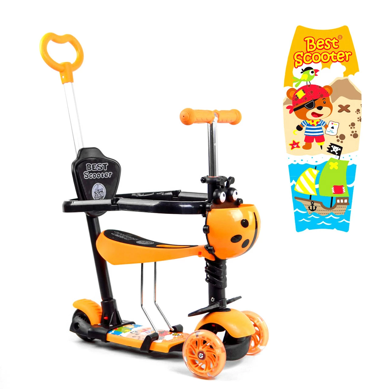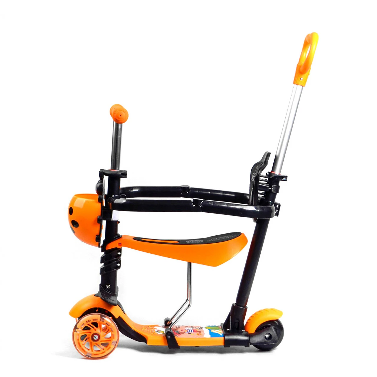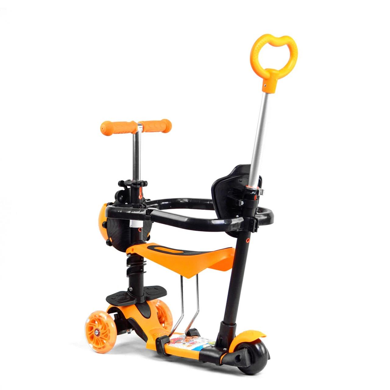 Самокат 5 в 1 с защитным бампером Scooter со световым эффектом Оранжевый 6900066351167