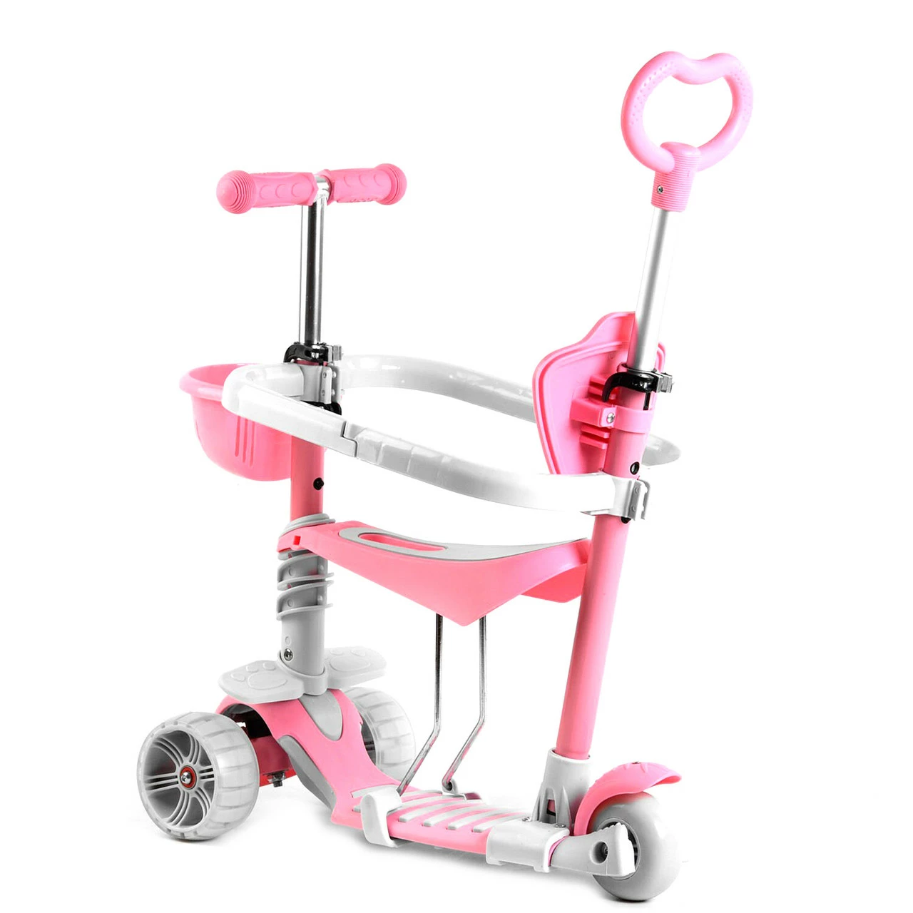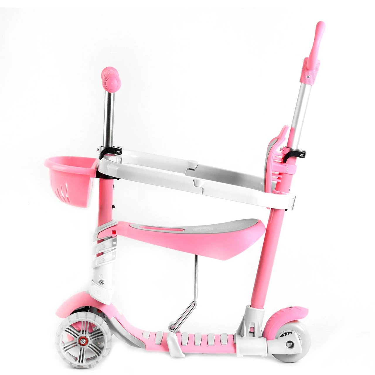 Самокат 5 в 1 с защитным бампером Scooter со световым эффектом Розовый 6900066353956