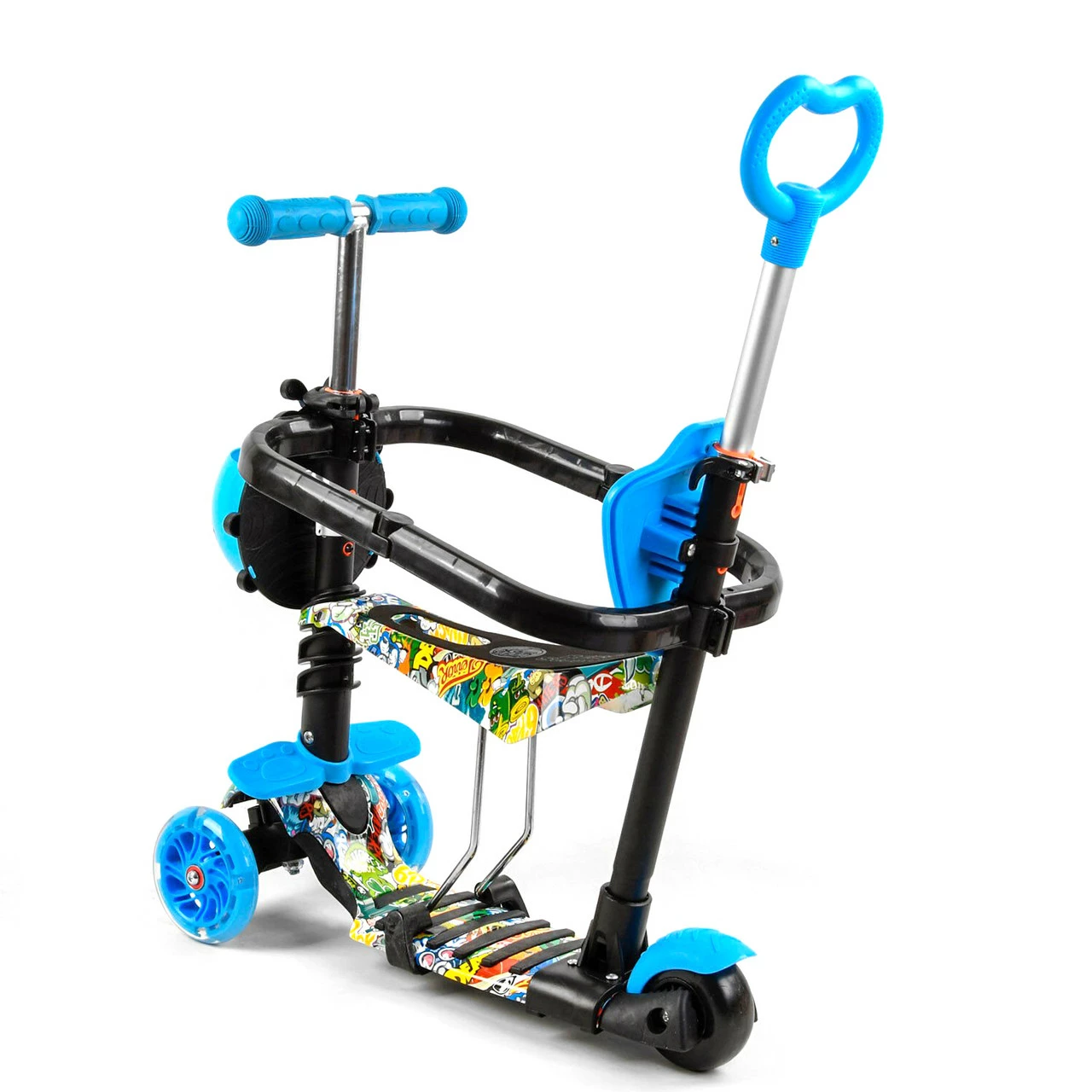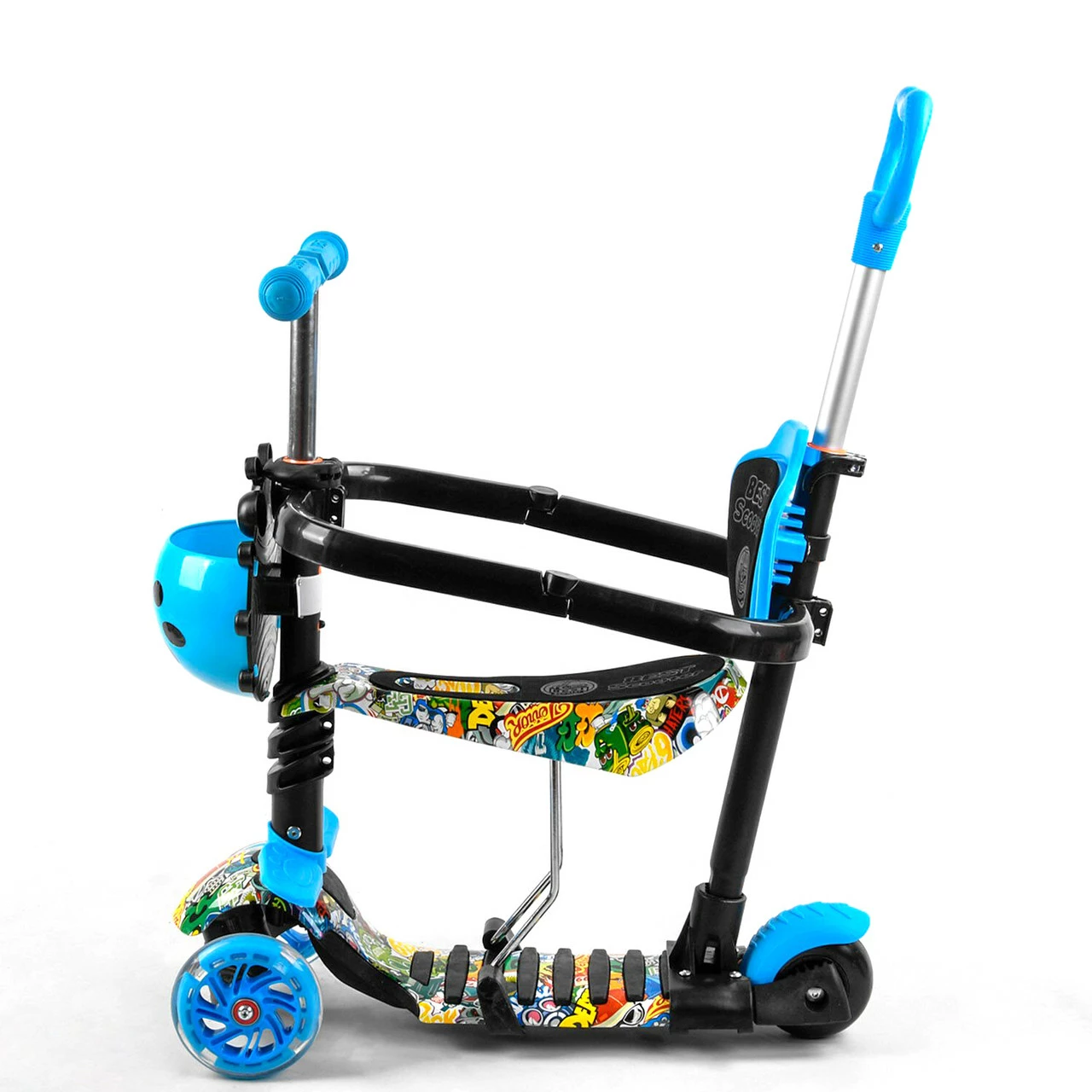 Самокат 5 в 1 с защитным бампером Scooter со световым эффектом Синий 6900066350542