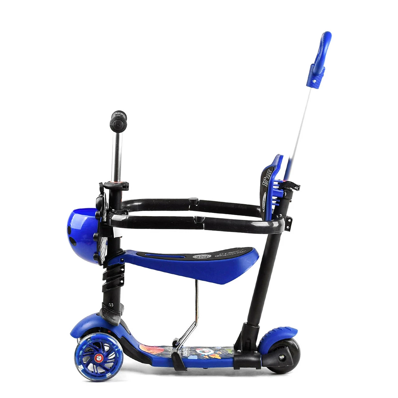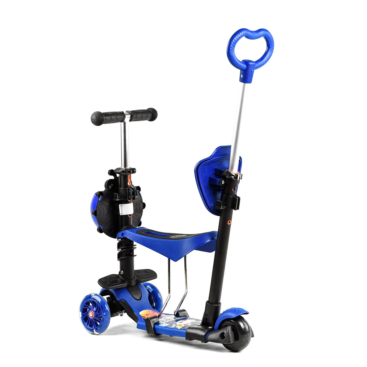 Самокат 5 в 1 с защитным бампером Scooter со световым эффектом Синий 6900066351198