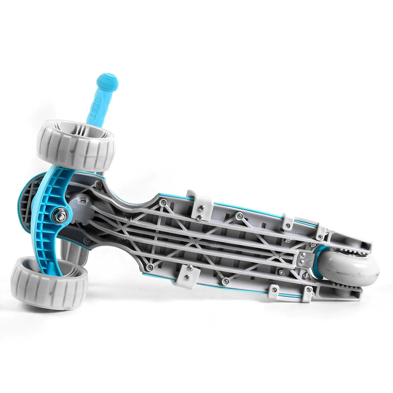 2 вида колес. Два передних светятся и изготовлены из полиуретана (PU), а заднее - из поливинилхлорида (пластика PVC); Размеры самоката: