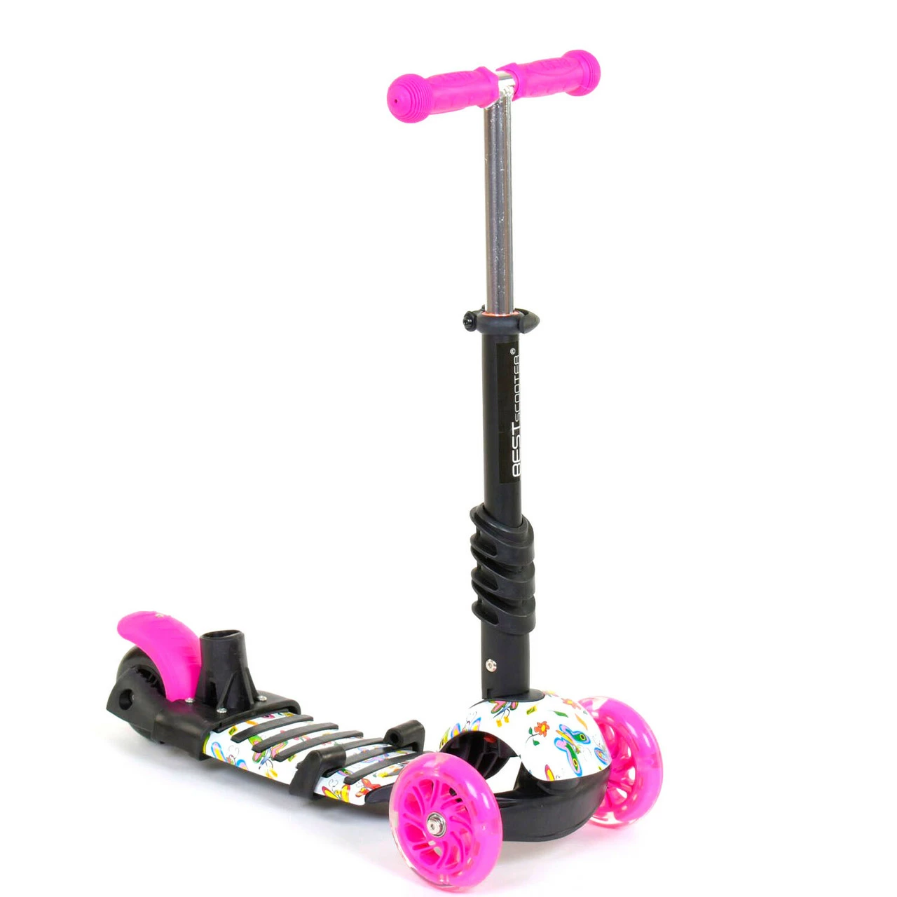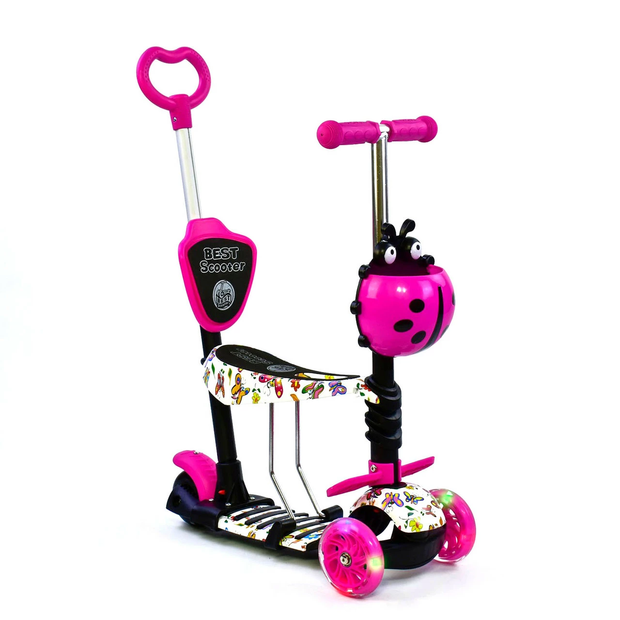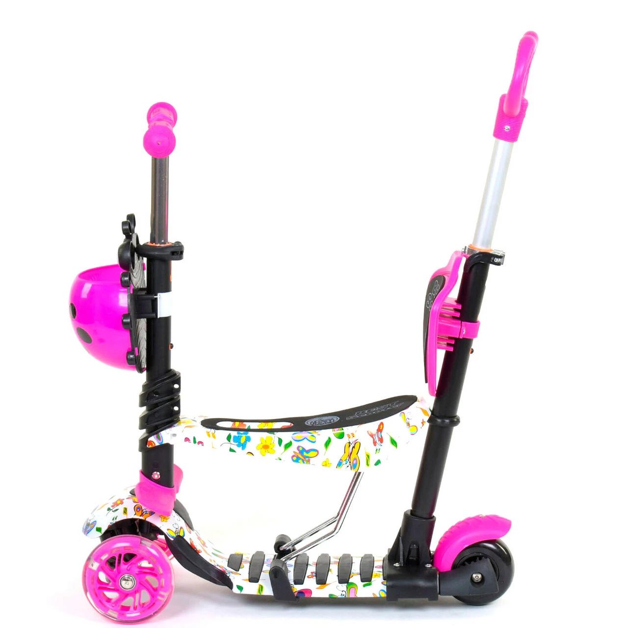 Самокат 5 в 1 Scooter со световым эффектом Бело-розовый 6900066317149