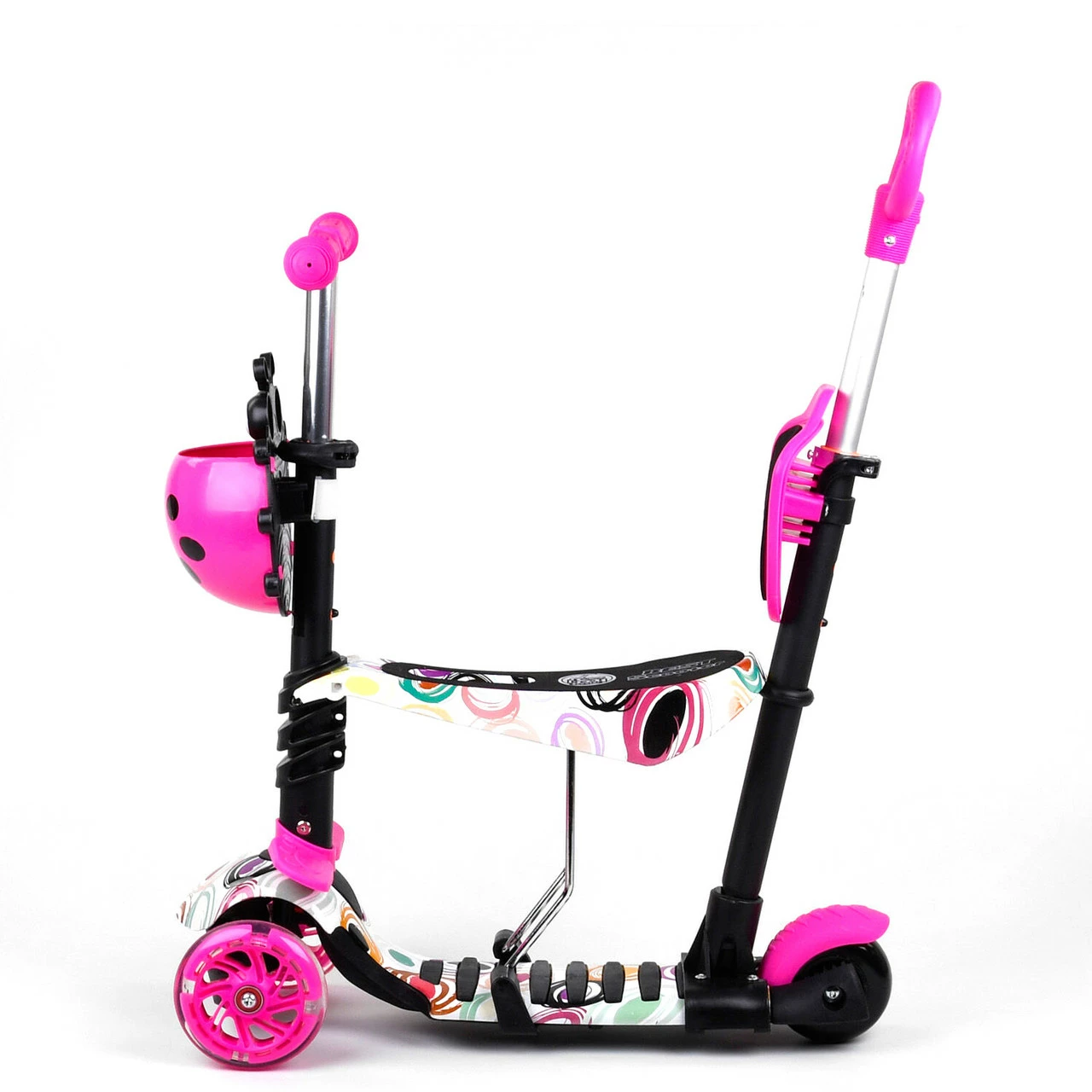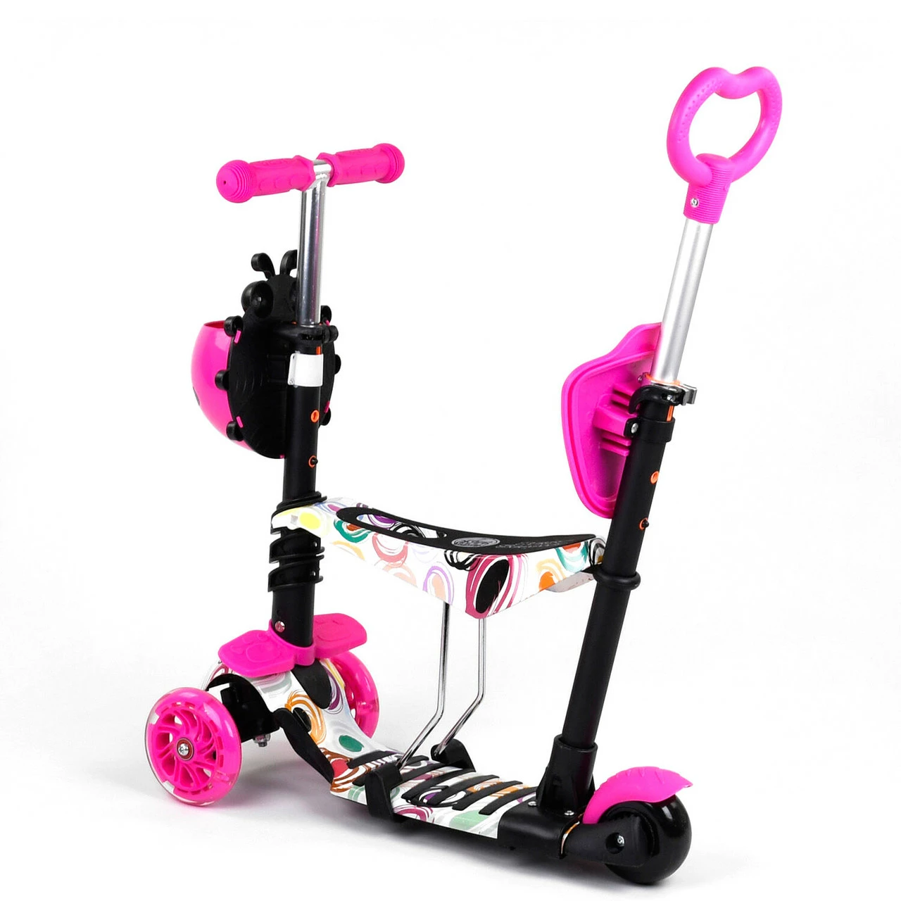 Самокат 5 в 1 Scooter со световым эффектом Бело-розовый 6900066350313
