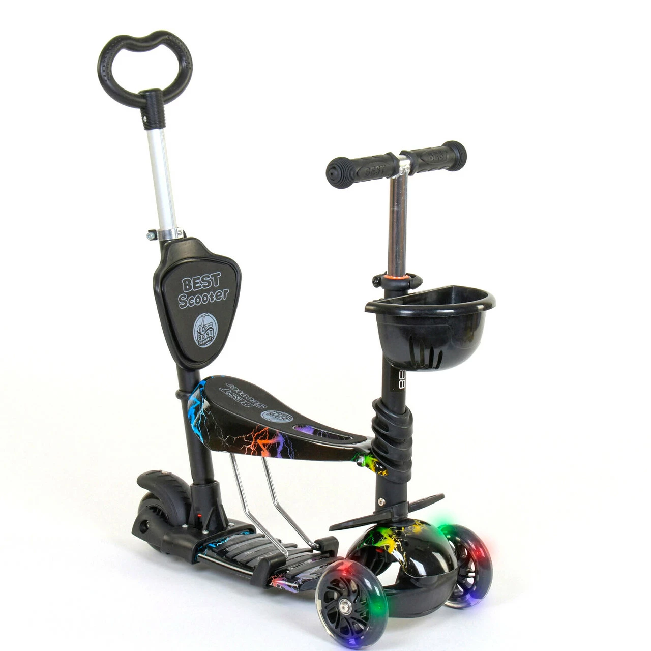 Самокат 5 в 1 Scooter со световым эффектом Черный 6900066317279