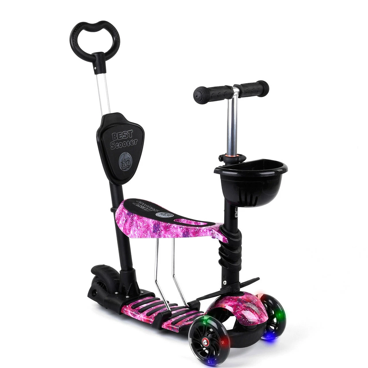 Самокат 5 в 1 Scooter со световым эффектом Черно-розовый 6900066350306