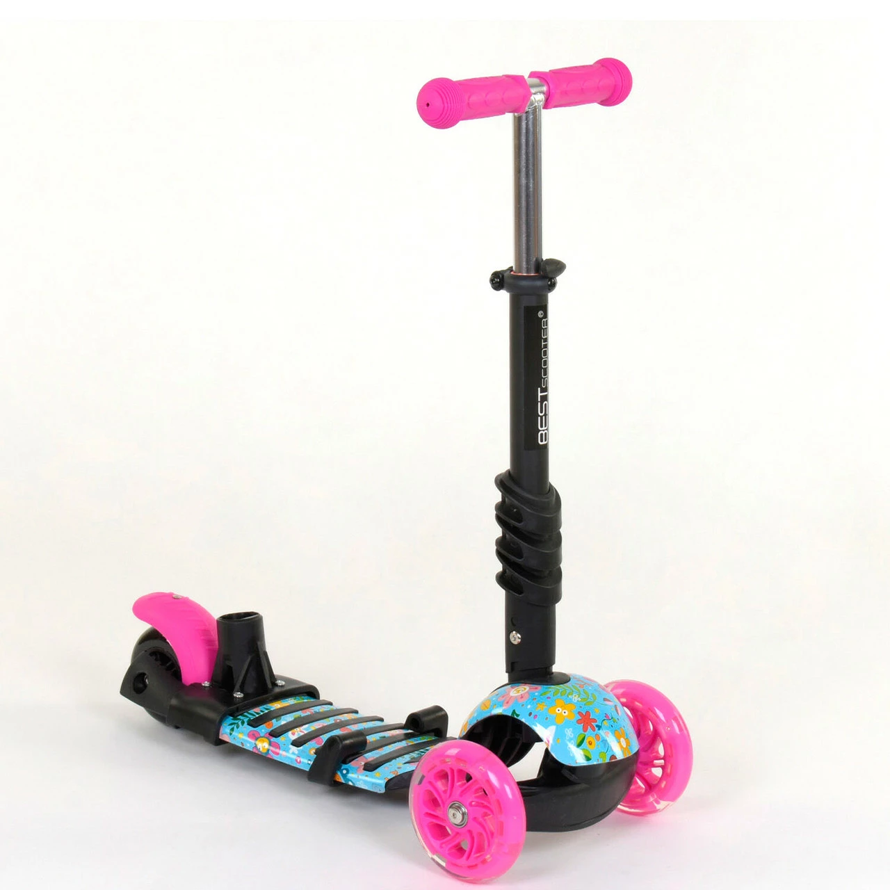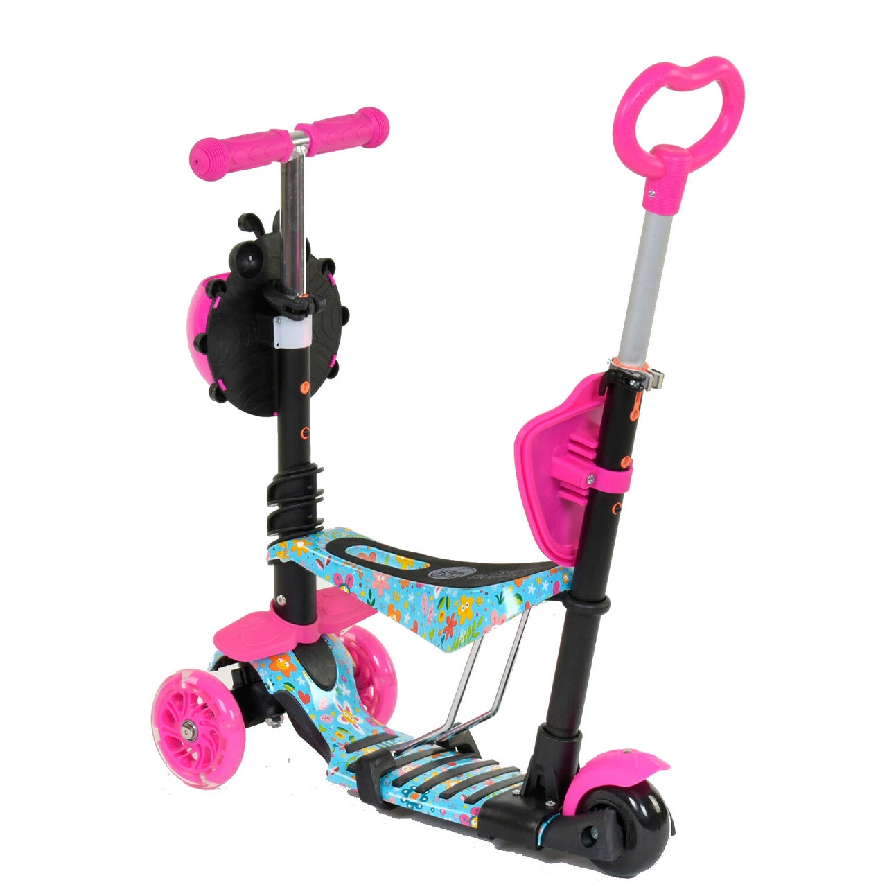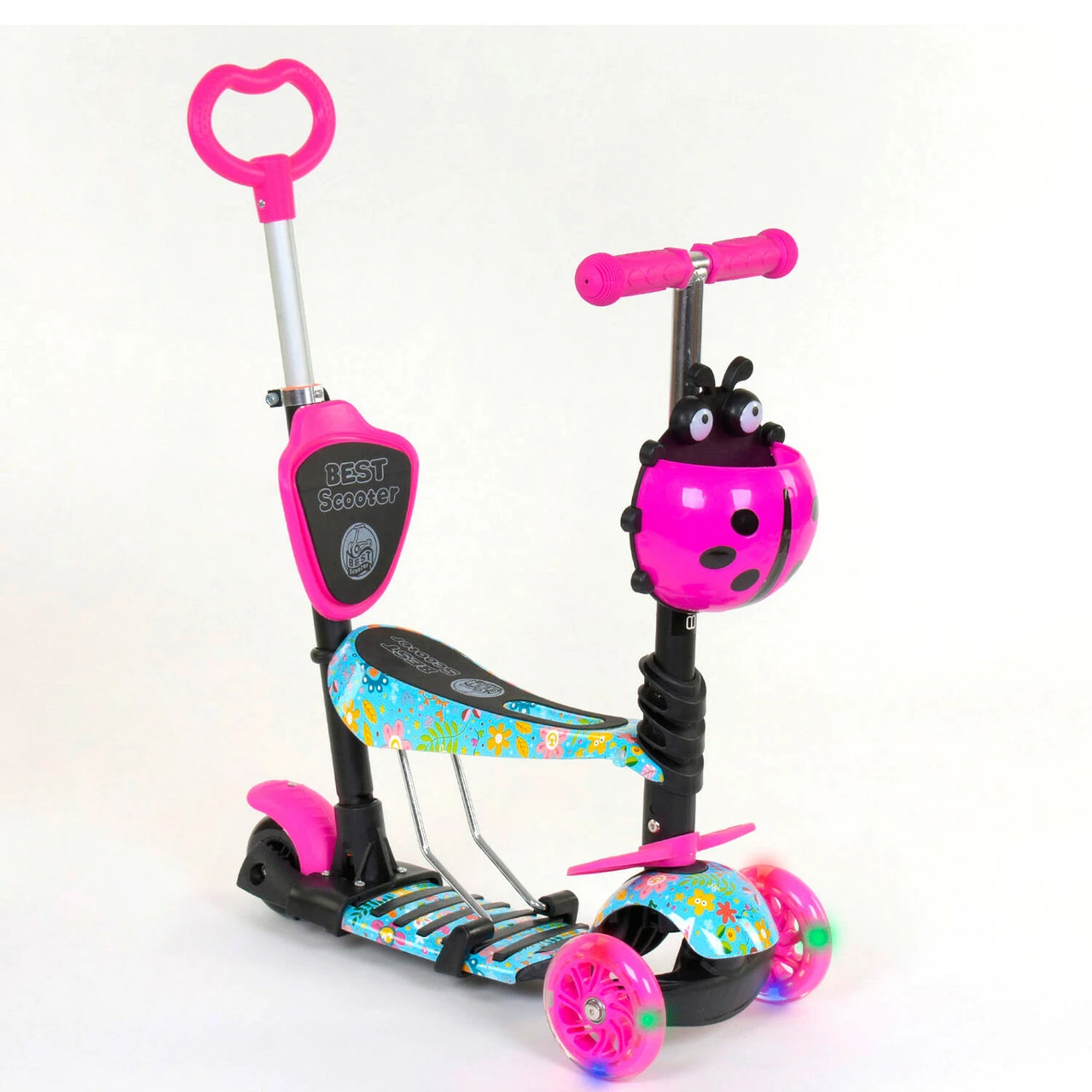 Самокат 5 в 1 Scooter со световым эффектом Розово-бирюзовый 6900066317217