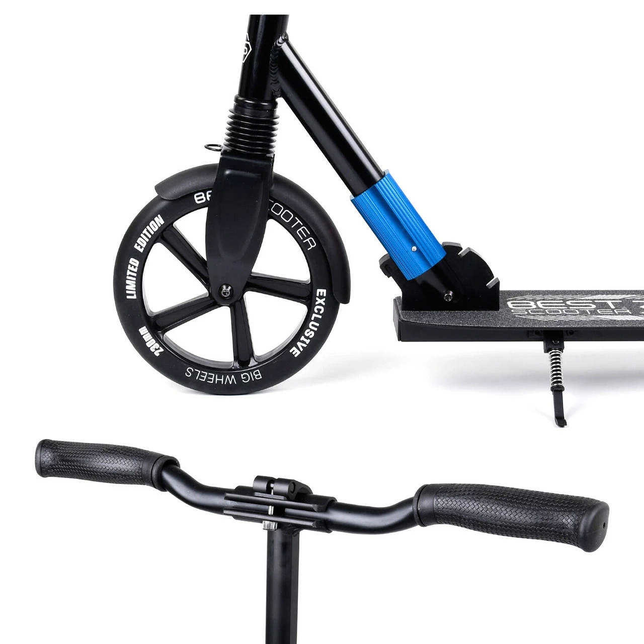 - Диаметр колес самоката: передние 230 мм; задние 215 мм