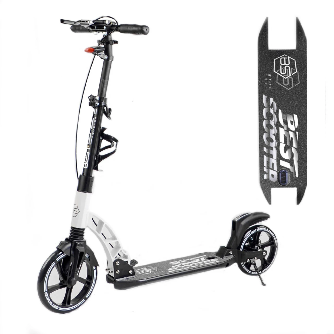 Самокат Scooter с Фарой и Амортизатором Черно-белый 6549196498429