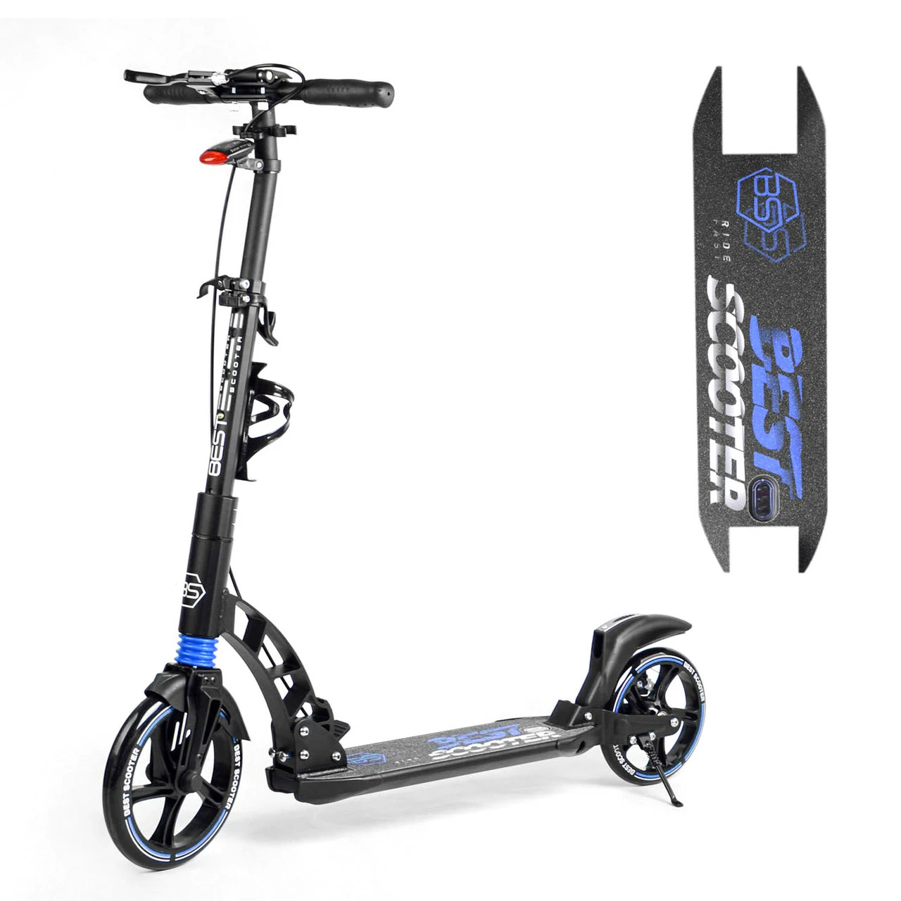 Самокат Scooter с Фарой и Амортизатором Черно-синий 3216498465130