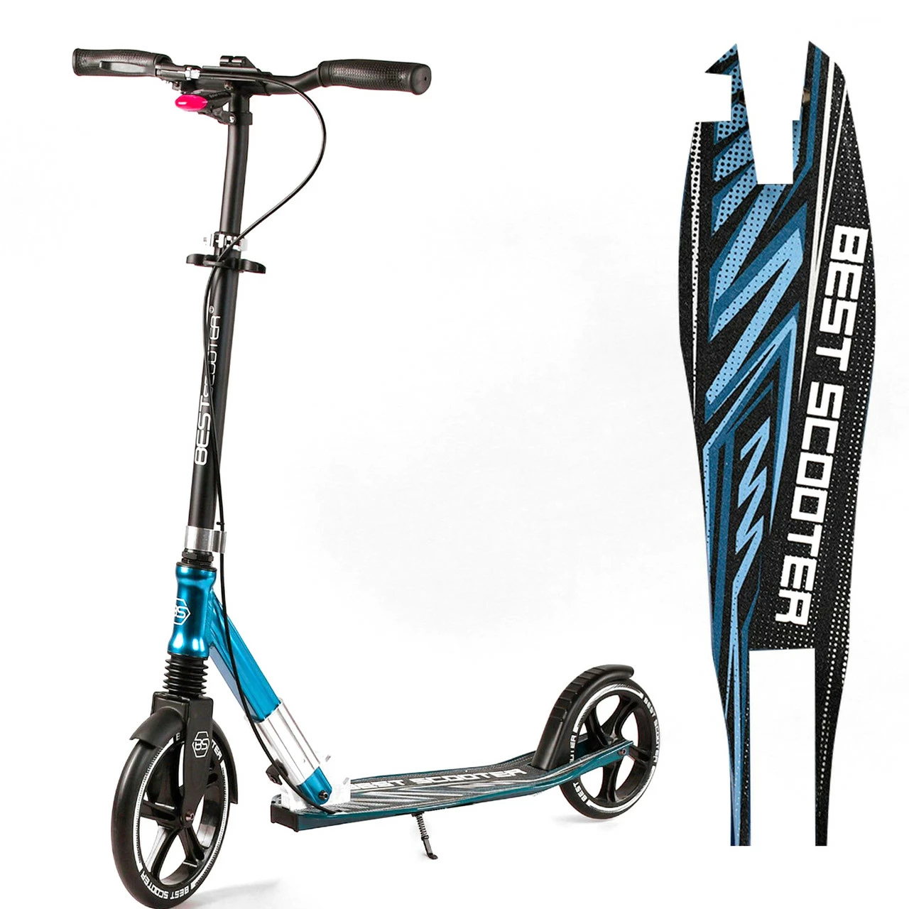 Самокат Scooter с Фарой и Амортизатором Черно-синий 6900083003476