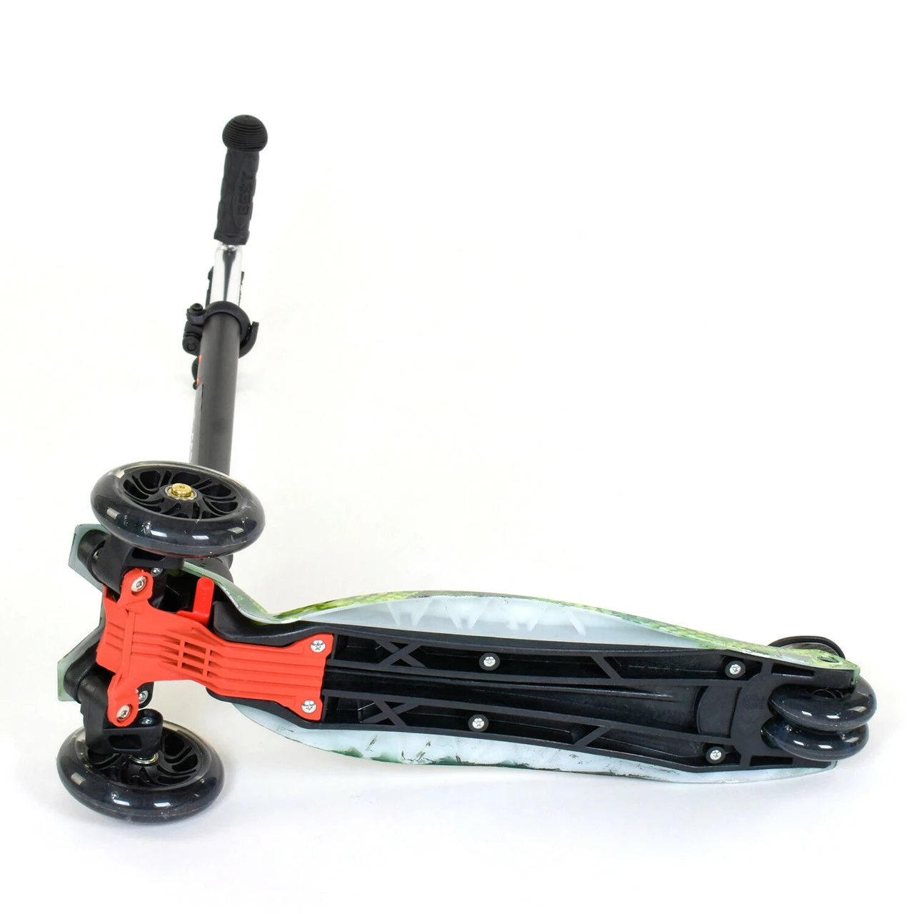 катания. Пластмассовая дека самоката выполнена из прочного